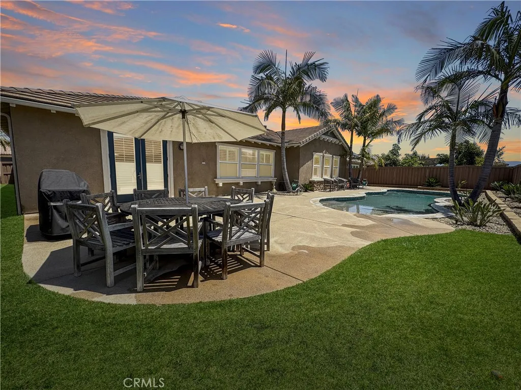 Welcome to 2025 James Gaynor, a sprawling single-story estate nestled on a prime corner lot in the prestigious gated community of Shady Grove. This meticulously maintained home offers over 3,200 sq ft of luxurious living space, featuring 4 spacious bedrooms, 3.5 bathrooms, formal living and dining rooms, a butlers pantry, and a stunning gourmet kitchen with custom European cabinetry, granite countertops, stainless steel appliances including a double oven, and an oversized island with stainless steel sink and wall-to-wall cabinets for abundant storage. The open-concept layout flows seamlessly into a large family room with a gas fireplace, custom precast surround, wood shutters, and elegant ceramic tile flooring throughout. The expansive primary suite feels like a private retreat, with space for a sitting area or office, and a spa-like bathroom featuring polished marble floors, a limestone-clad walk-in shower with bench seating, a separate soaking tub, and dual sinks with a built-in vanity. All secondary bedrooms offer ceiling fans, plush carpet, and custom window coverings. The home also boasts a large laundry room with storage cabinets and a sink, as well as a fully finished 3-car garage with insulated doors and overhead storage racks. Step outside into your private backyard oasisperfect for entertainingwith a sparkling pebble tech pool, drought-tolerant landscaping, and a concrete walkway leading from the driveway to the rear yard. This home also includes a fully owned, PAID OFF SOLAR ENERGY SYSTEMoffering significant monthly utility savings and eco-friendly living with no