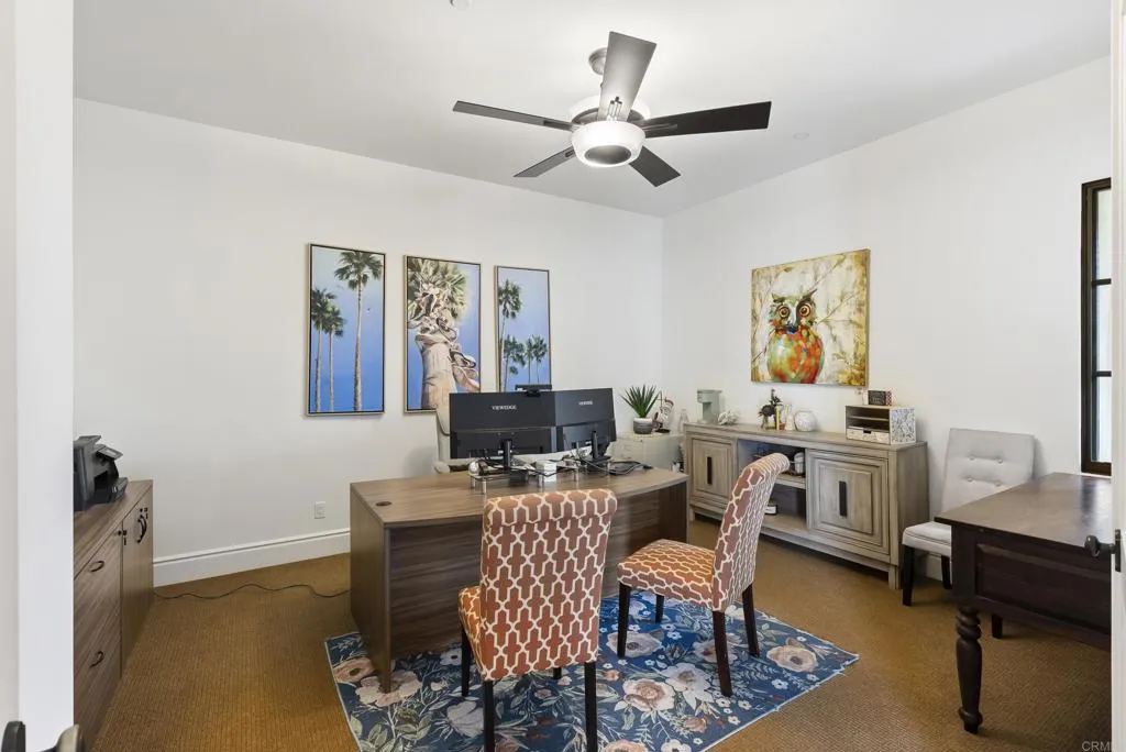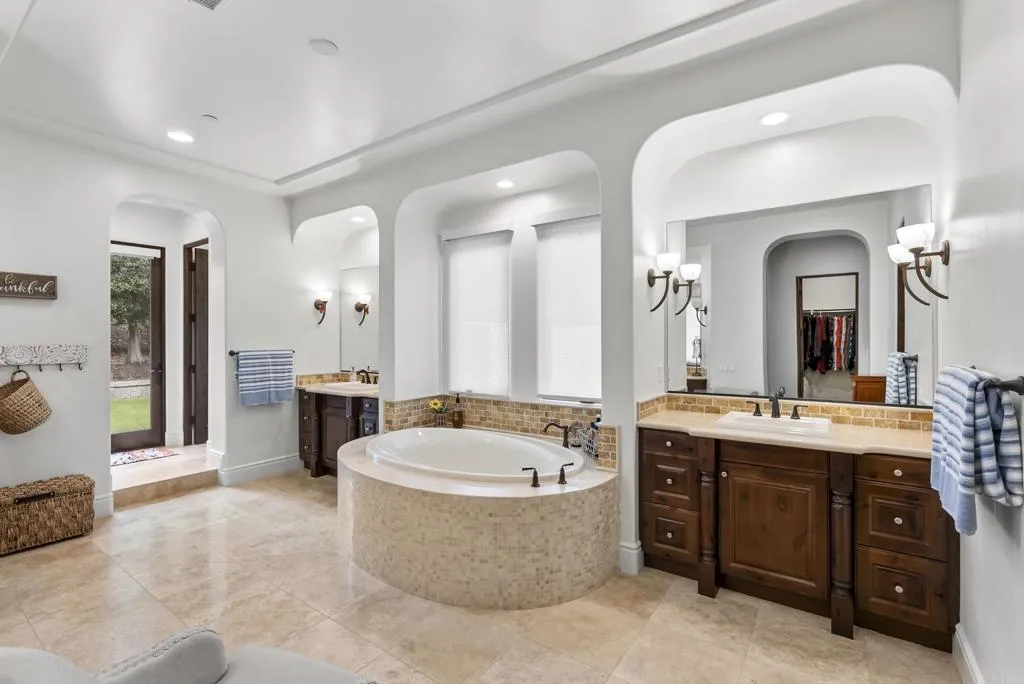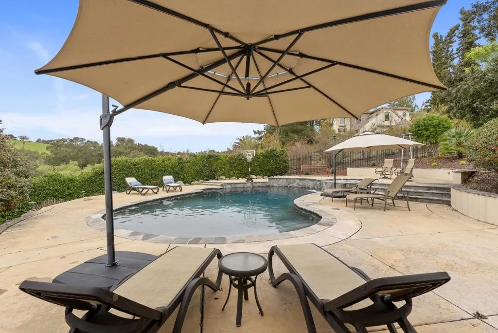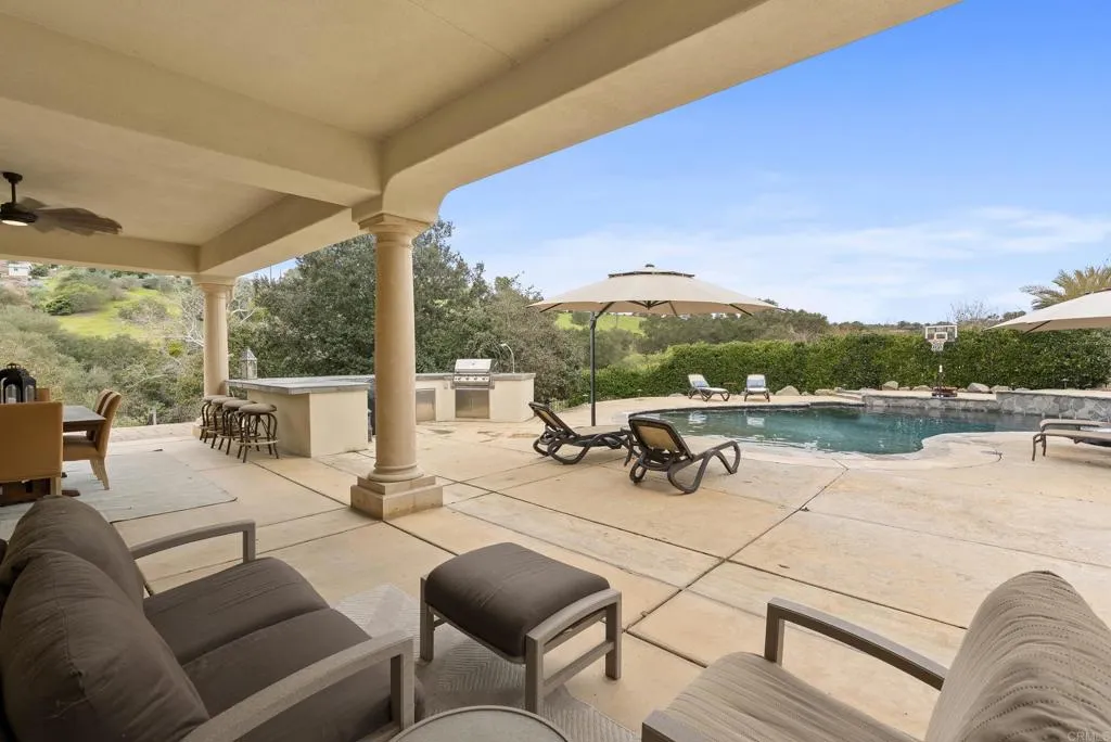 Looking for SINGLE-LEVEL LUXURY in Fallbrook? Tucked inside the gated enclave of Malabar Ranch, this beautiful custom home, built in 2011 by Beucler Signature Homes, offers space, privacy, and refined comfort without sacrificing convenience. Less than five minutes to the 76 freeway and 10 minutes to the 15 freeway, yet once inside the gates, it truly feels like a world away. Set on approximately two acres overlooking a preserve, this 4,800 sq ft home is designed to let you breathe. Generously sized living spaces, three bedrooms each with ensuite baths, and a spacious den/office/or fourth bedroom provide flexibility for everyday living or hosting guests. Stunning solid wood doors and windows frame the surrounding views and invite the outdoors in, highlighting the craftsmanship and quality materials throughout. At the heart of the home, the kitchen balances warmth and performance with high-quality cabinetry, a large island, subway tile backsplash, custom tile over the cooktop, dual walk-in pantries, and a butlers pantry/wet bar. Thermador appliances include a built-in refrigerator, 6-burner range with griddle, double ovens, microwave, warming drawer, and dual dishwashers. Remote control gas fireplaces add instant charm in the family room, living room, dining room, and primary suite. The primary retreat also features a wet bar, soaking tub, and dual-head shower. Outside, life slows down. Enjoy open views from the saltwater pool and spa, gather around the outdoor kitchen and covered dining area with TV, unwind by the courtyard fireplace, or practice on the putting green. Whole-