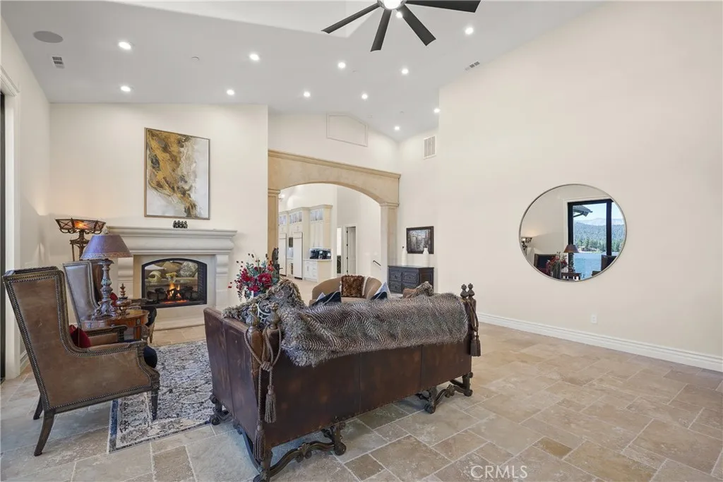 This fully modern remodeled lakefront home in Fawnskin, Big Bear Lake, in a private gated area offers a perfect blend of luxurious living and natural beauty. With six spacious bedrooms 6.5 bathrooms including a steam shower in the master suite. plus an extra game room and family room. The open-concept floor plan allows for seamless flow between the living spaces, with floor-to-ceiling windows that bring in an abundance of natural light while showcasing breathtaking lake views. Large glass doors open directly to outdoor patios, offering the perfect setting to enjoy a drink and take in the serene surroundings. The home boasts a stunning island kitchen equipped with high-end finishes and LED lighting, which can be controlled remotely from your phone for convenience. This chef-inspired kitchen is perfect for entertaining guests or enjoying a quiet meal. Adjacent to the kitchen is a cozy family room with ample seating, providing a great space for relaxing and socializing. The property also includes a game room with a bar area, ideal for hosting parties or enjoying casual evenings with loved ones. A private 3 slip dock extends from the property, offering direct access to the water for boating, fishing, jet skis, or simply enjoying the lakefront lifestyle. With unparalleled views of the lake and surrounding mountains, the home truly makes you feel as if you're on the water itself. Whether youre relaxing indoors, enjoying the outdoors, or hosting gatherings in the game room, this home is a perfect sanctuary for those seeking luxury, comfort, and a prime location on Big Bear Lake.