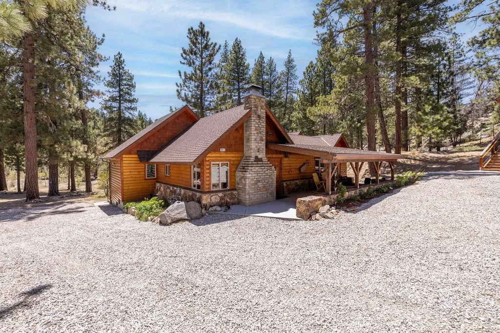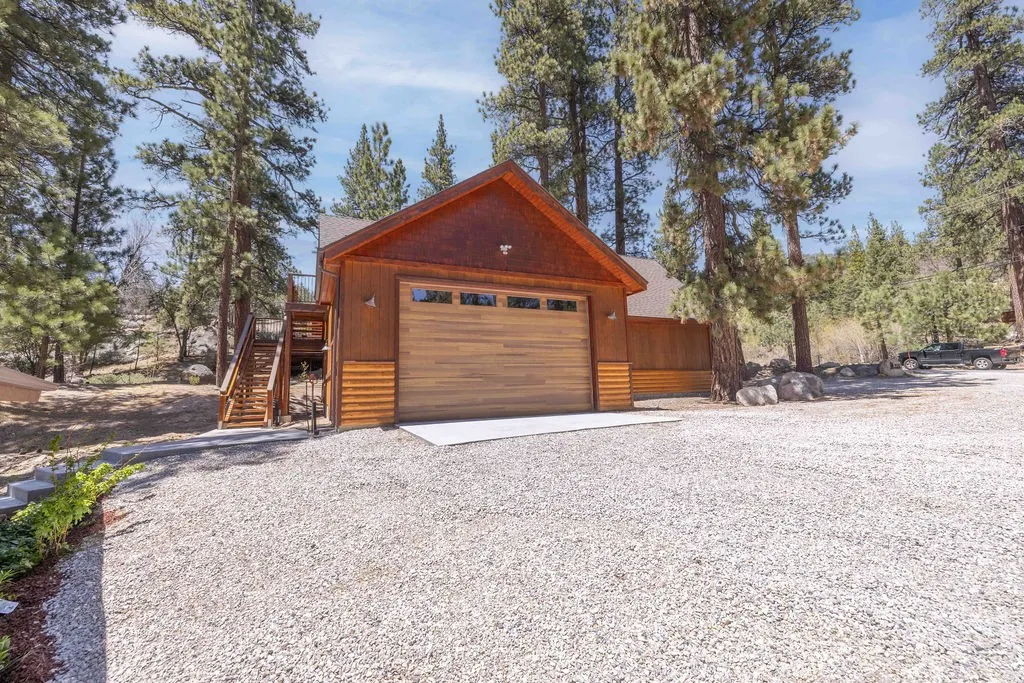 A rare blend of serenity, style, and space awaits on this enchanting 3.5+ acre (fully usable) retreat, where over 580' of Grout Creek flows gently along the rear of the propertybringing the beauty of nature right to your doorstep. Thoughtfully remodeled from top to bottom, this captivating 3-bedroom, 2-bath home offers refined mountain living with modern comforts throughout. Step inside to discover radiant heated floors in the kitchen and bathrooms, an A/C system in the living room and kitchen, and a spacious layout ideal for both quiet mornings and lively gatherings. Outside, expansive tuff flex decking invites you to sip coffee beneath the pines or dine under the stars, surrounded by the soft sounds of the creek. An impressive detached 6 to 8 car garage provides ample storage for toys and tools, while the upstairs bonus roomcomplete with water hook-upsoffers potential for a studio, guest space, or private office. Below the main house, a bonus rec/game room adds even more space for fun and entertainment. Sustainability and self-sufficiency shine with a fully owned solar system and well water on siteideal for those craving both luxury and independence. Located near Captain Johns Marina and the west boat ramp, this rare offering combines the best of adventure and escape. Whether youre seeking a weekend getaway or a full-time haven, this is where your story beginsrooted in nature, wrapped in elegance, and designed to inspire.