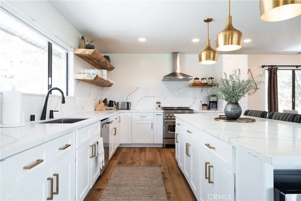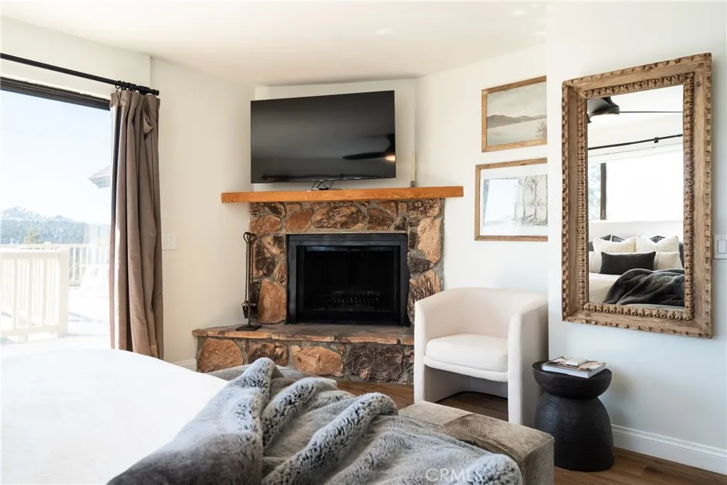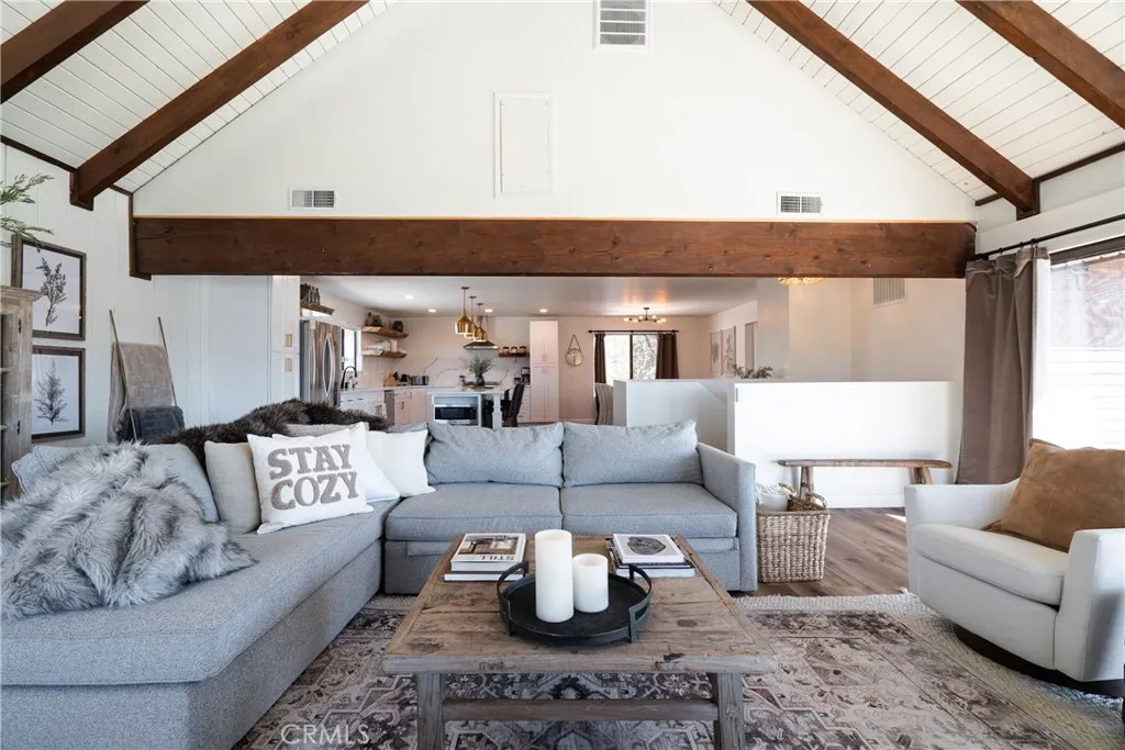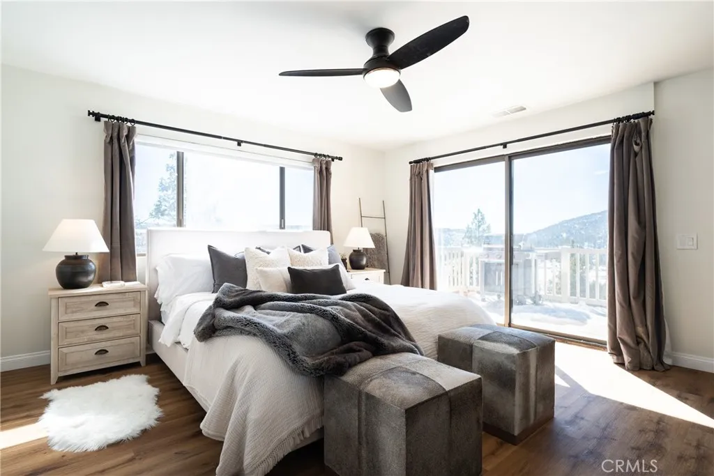 Breathtaking views in every direction, plus approximately $140K in annual gross short-term rental revenue! Positioned high above the valley, this beautifully remodeled mountain home feels like its sitting on top of the world, offering sweeping panoramic vistas of Big Bear Lake, the valley below, forested ridgelines, surrounding mountains, ski slopes, and San Gorgonio. From sunrise to golden-hour sunsets, the expansive skyline creates an unforgettable backdrop ideal for stargazing and four-season mountain enjoyment. Offering approximately 2,592 square feet of living space, the home features 4 bedrooms and 4 bathrooms, designed for comfort, privacy, and flexibility. The upper level serves as the main living space, showcasing vaulted ceilings, abundant natural light, and an open-concept layout that seamlessly connects the living room, dining area, and kitchen. A stone fireplace anchors the living area, while large windows and direct deck access keep the dramatic views front and center. The expansive upper deck is ideal for entertaining, relaxing, or simply taking in the scenery. A dedicated office nook and a private primary bedroom complete this level. The lower level is equally impressive, offering three additional bedrooms, multiple bathrooms, and outstanding recreation spaces. The spacious garage has functioned as a game room and entertainment hub, while a charming under-stair nook provides flexible bonus space. The layout allows for excellent separation between gathering areas and sleeping quarters. Outdoor living is a highlight, with multiple decks, a hot tub, fire pit, a