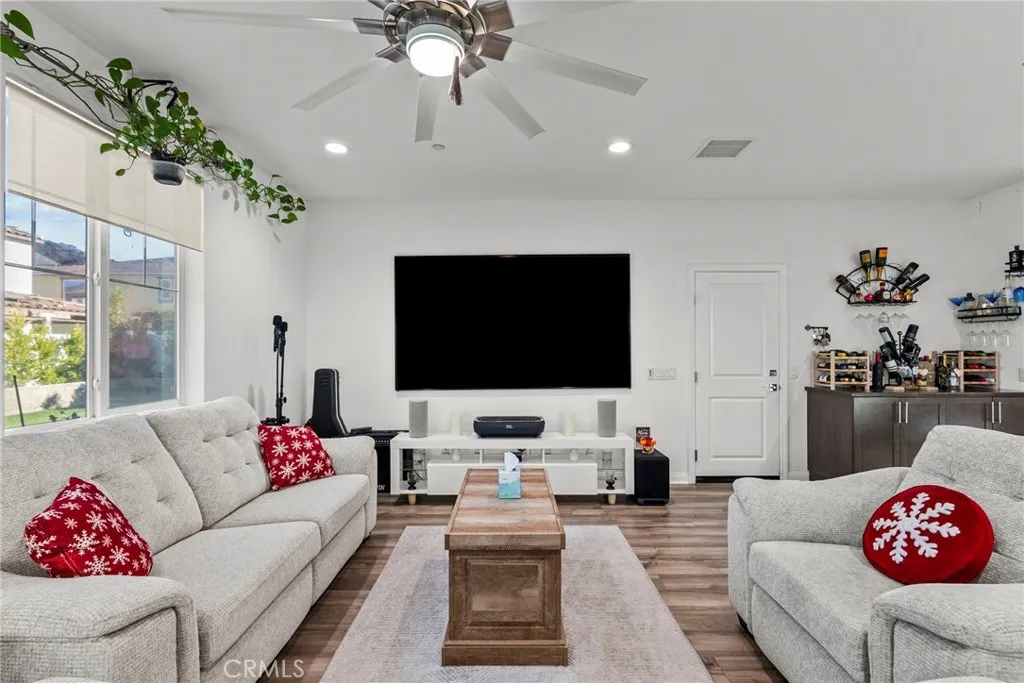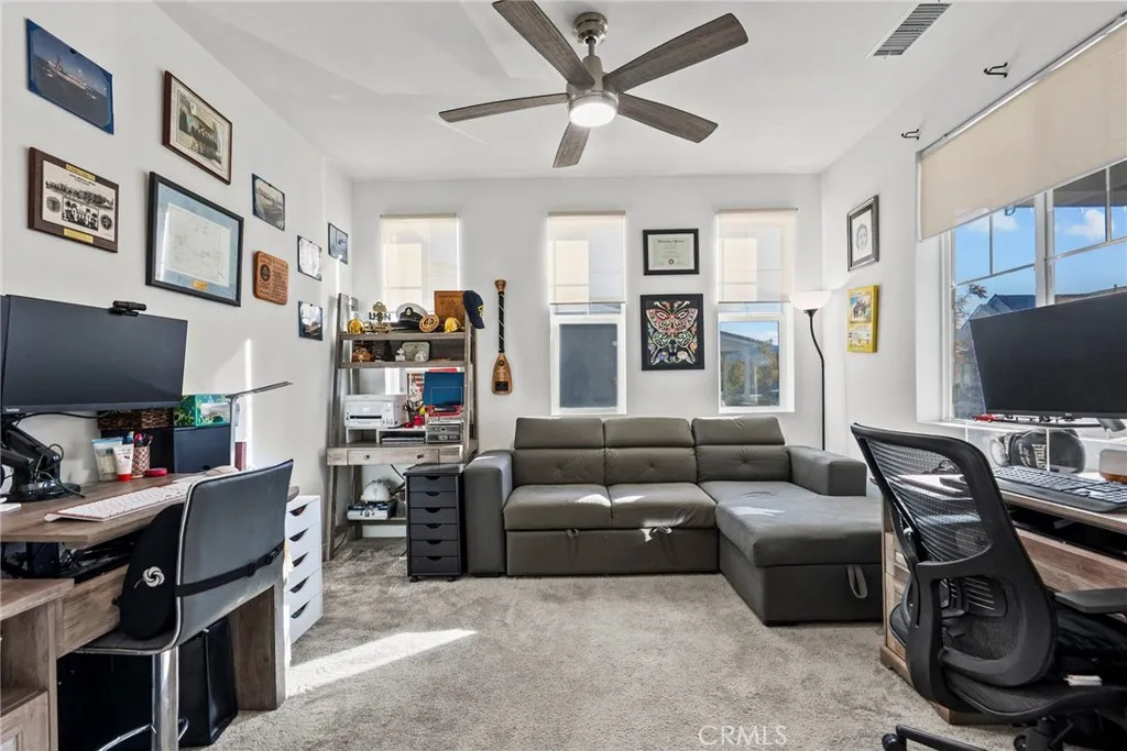 **OWNED SOLAR, FULLY LANDSCAPED and OVER $100,000 in UPGRADES!** NO HOA making it one of Fillmores most attractive modern homes. This spacious Heritage Grove home features a highly desirable downstairs bedroom, a separate downstairs office that closes off with custom barn doors, a full bathroom on the main level, perfect for multi-generational living, guests, or work-from-home needs. The open-concept first floor showcases waterproof luxury vinyl plank flooring throughout, recessed LED lighting with dimmers, custom-tinted windows with cordless blinds, and an impressive 9-ft stackable sliding glass door that leads to a covered patio and newly landscaped yard spacious for all your entertaining needs. The gourmet kitchen shines with a scratch-resistant Chefs Stainless Steel Appliance Package, modern finishes, and a layout ideal for both daily living and entertaining. Upstairs features double-insulated carpet, spacious bedrooms, and upgraded bathrooms with elegant shower enclosures, all complemented by ceiling fans throughout the home. Energy efficiency shines with a 5 kW / 14-panel SunPower solar system, while the exterior offers stamped and sealed concrete, fully landscaped front, side, and backyard spaces with smart sprinklers, newly planted privacy trees, paved walkways, pony wall, added drainage, and an extended gas line for outdoor cooking. Additional upgrades include a deep laundry sink, extra side-yard access gate. A unique attribute of this model home is the extended driveway allowing for ample parking. The seller is open to including the washer/dryer, matching fridge,