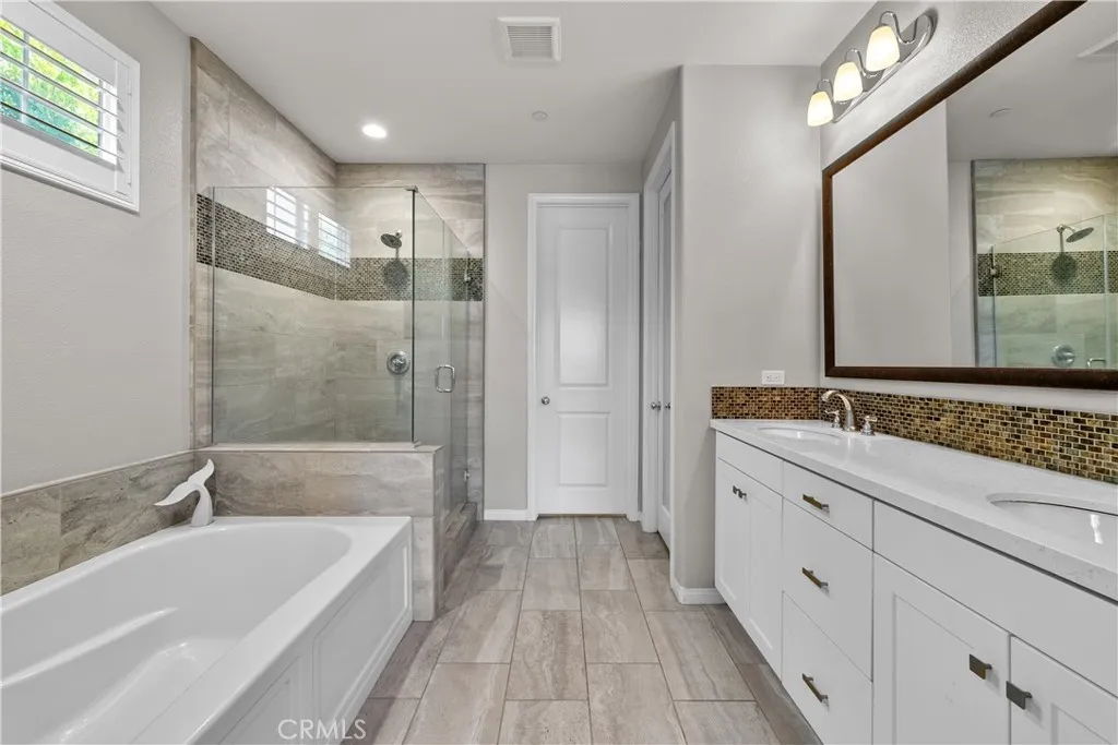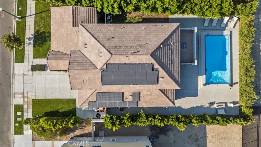 STUNNING Turnkey Pool Home with Mountain Views & No HOA! This 4-bedroom + loft home in Heritage Grove offers luxury, comfort, and efficiency with two paid-off solar systems and Tesla Powerwalls for low utility costs and reliable backup power (over $45K in solar upgrades!). As you enter the home, you'll fall in love with the expansive nearly wraparound patio offering breathtaking views. Step inside to a designers dream home with a bright open floor plan featuring ceramic flooring, high ceilings, recessed lighting, and a chefs kitchen with an oversized island with seating, designer backsplash throughout, stainless steel appliances, walk-in pantry, an abundance of storage and custom finishes. PLUS, the family room displays breathtaking mountain and pool views-custom shutters and oversized sliding doors with custom motorized blinds to allow an abundance of natural light. A downstairs suite with a custom-tiled shower, soaking tub and walk-in closet is perfect for guests. From the tailored foyer to the expansive living areas, this home is thoughtfully and fully upgraded. Upstairs, enjoy the sunset from every room or your private balcony. Each bedroom is generously sized, proving ample space for your favorite furniture. In addition, a spacious loft (perfect for a game room, movie room, living room or more!) a secondary primary suite and a stylish, fully upgraded laundry room with exceptional custom tile accents! The backyard is an entertainers dream with a heated pool, firepit, planter boxes and low-maintenance landscaping. Enjoy privacy with no rear neighbors and take advantage o