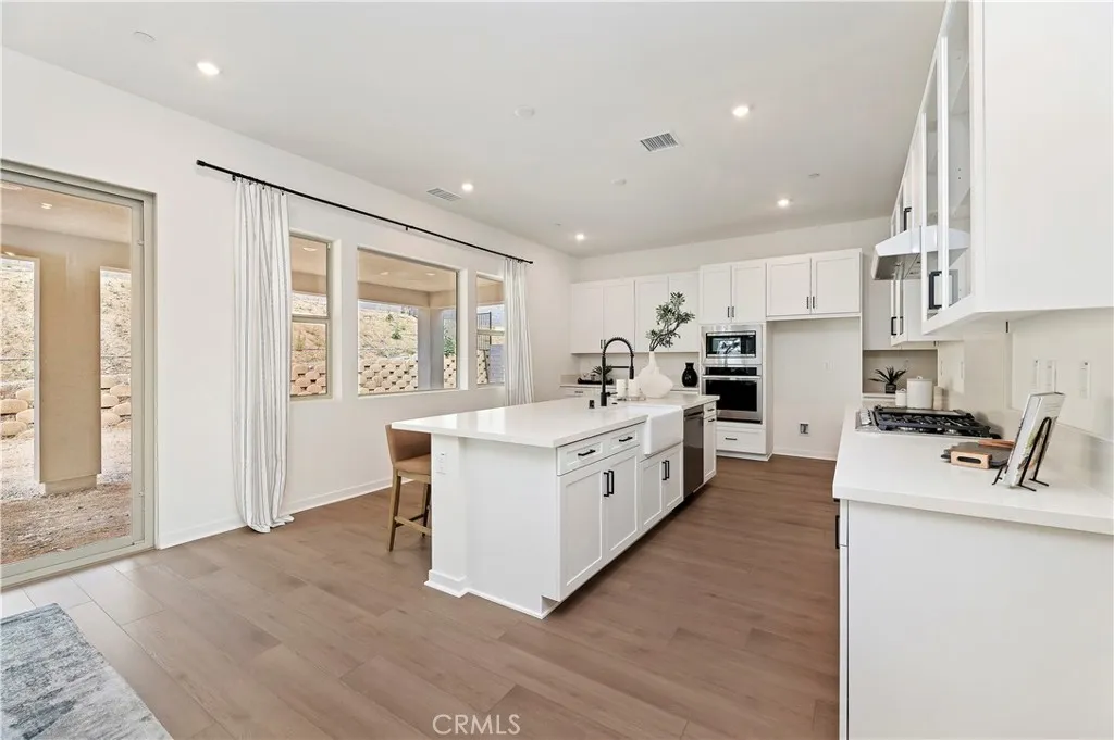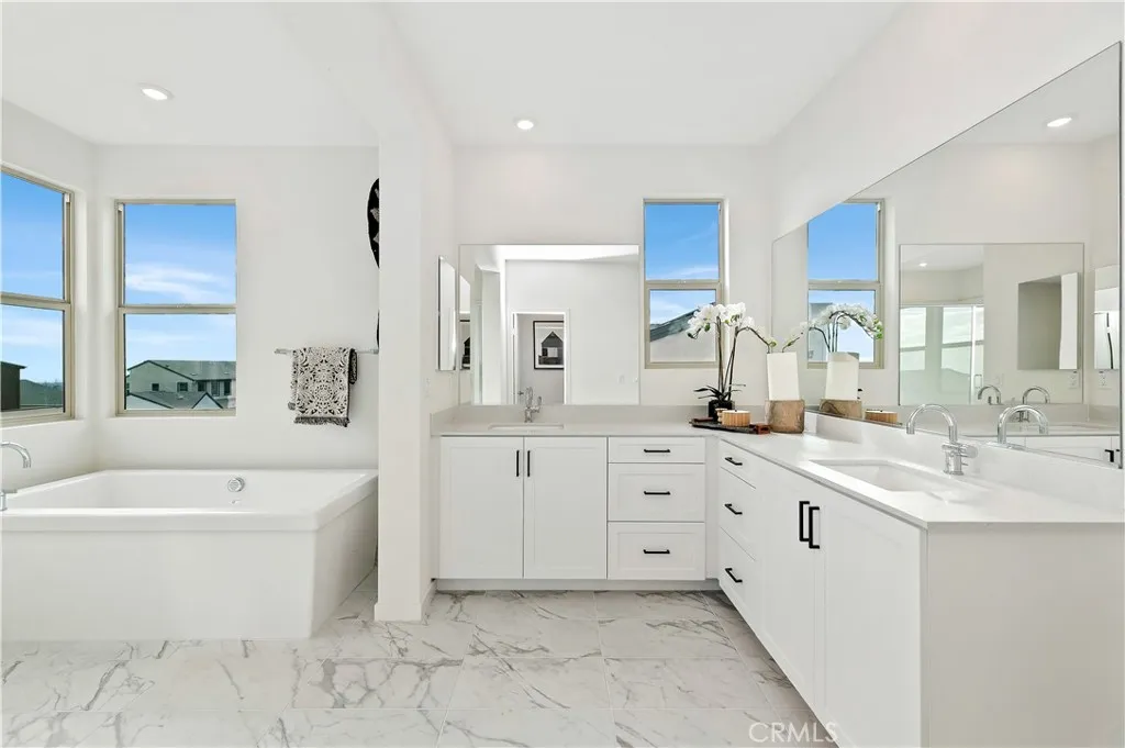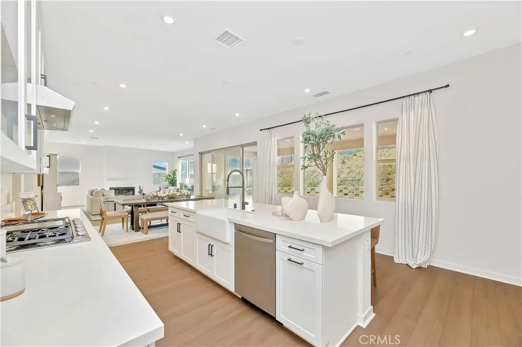 Step beyond the brick-framed porch and into a home that immediately feels both grand and welcoming. This 3,612 SqFt Modern Spanish residence rises gracefully above the street, its light aqua front door hinting at the calm, curated elegance within. Inside, sky-high ceilings and warm laminate wood flooring create a sense of openness that carries throughout the main living spaces, all designed to bring in natural light and modern comfort. The kitchen is a statement with Samsung stainless steel appliances, a white porcelain farmhouse sink with a matte black Moen faucet, soft-close white shaker cabinetry, quartz counters and sleek matte black hardware. Just beyond, stairs with an Alabaster-painted handrail lead up to the homes private spaces, but not before revealing one of the propertys most exceptional features: the fully independent in-law suite. With its own kitchenette, dual-sink bathroom, and walk-in closet, this space is tailor-made for multigenerational living or long-term guests. Upstairs, a spacious loft offers room for movie nights, homework sessions, or a second lounge. The conveniently located laundry room -- finished with elegant tile and a utility sink -- adds true everyday practicality. The primary suite fills with natural light and is anchored by a spa-like bath featuring a large Roman soaking tub and an oversized walk-in shower. The backyard is a blank canvas, already set with the privacy of no rear neighbors and ready for your imagination -- jacuzzi, garden, outdoor kitchen... Additional highlights include 13 solar panels, smart-home automation, Moen fixtures