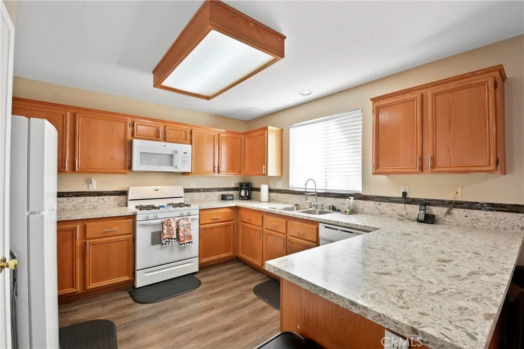 Welcome to 17049 La Vesu Rd. This lovely 4 bedroom 2.5 bathroom home is located in the desirable area of Country Club Estates in Fontana. This home has beautiful curb appeal and a spacious driveway. The charming front porch is a nice place to relax. Upon entering you will find a separate formal living space and a well appointed kitchen that opens up to the dining and family rooms. Beautiful waterproof laminate wood flooring is great for easy maintenance. A patio slider provides easy access to the back yard with a huge covered patio and an additional tiered patio for extra outdoor entertaining. There is plenty of room in this home for everyone! The washer and dryer in laundry room are also included. A guest bathroom right off the garage completes the first floor. Upstairs offers 2 full bathrooms and 4 private bedrooms with ceiling fans. There is also a Loft which could easily convert to a 5th bedroom if needed. The primary bedroom boasts a spacious bathroom with separate tub, shower and large walk in closet. This wonderful home is located at the end of a cul de sac, perfect for kids playing outside. The well established NO HOA neighborhood is conveniently located to freeways, schools, shopping medical centers, parks and much more. Come take a look and make this your new home! Schedule a showing today!