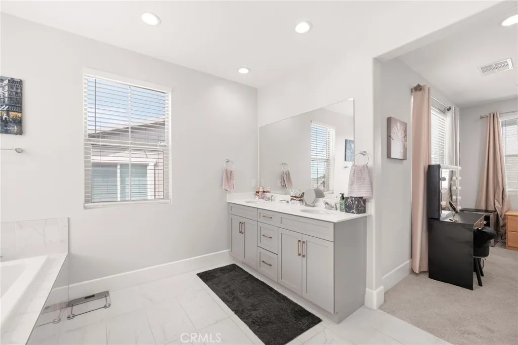 Nestled within the prestigious gated community of Shady Trails, this impeccably maintained detached residence offers a harmonious blend of modern design and everyday comfort. Spanning over 2,200 square feet, the home features 4 spacious bedrooms, 3 bathrooms, and a two-car attached garage. Upon entry, youre welcomed by an expansive open-concept layout, where elegant tile flooring extends across the main level. The living and dining areas flow seamlessly into a beautifully appointed kitchen, thoughtfully designed with an oversized center island, breakfast bar seating, stainless steel appliances, a generous walk-in pantry, and a sleek single-basin sinkcreating an ideal setting for both refined entertaining and daily living. The upper level reveals a serene primary suite, offering a private retreat complete with dual vanities, a deep soaking tub, a separate walk-in shower, and an expansive walk-in closet. Two well-proportioned secondary bedrooms, a dual-sink hall bath, a versatile loft space, and a thoughtfully designed laundry room with built-in workstation and storage complete the second floor. As a resident of Shady Trails, youll enjoy an exceptional lifestyle enriched by an array of resort-caliber amenities, including sparkling pools and spas, state-of-the-art fitness centers, multiple sport courts, and the impressive Parkhouse clubhouse featuring entertainment spaces, recreational facilities, and scenic walking paths. Ideally located near premier shopping, dining, golf, and convenient freeway access, this residence offers a rare opportunity to experience elevated living i