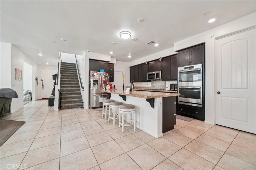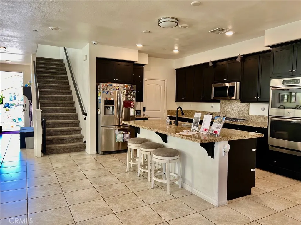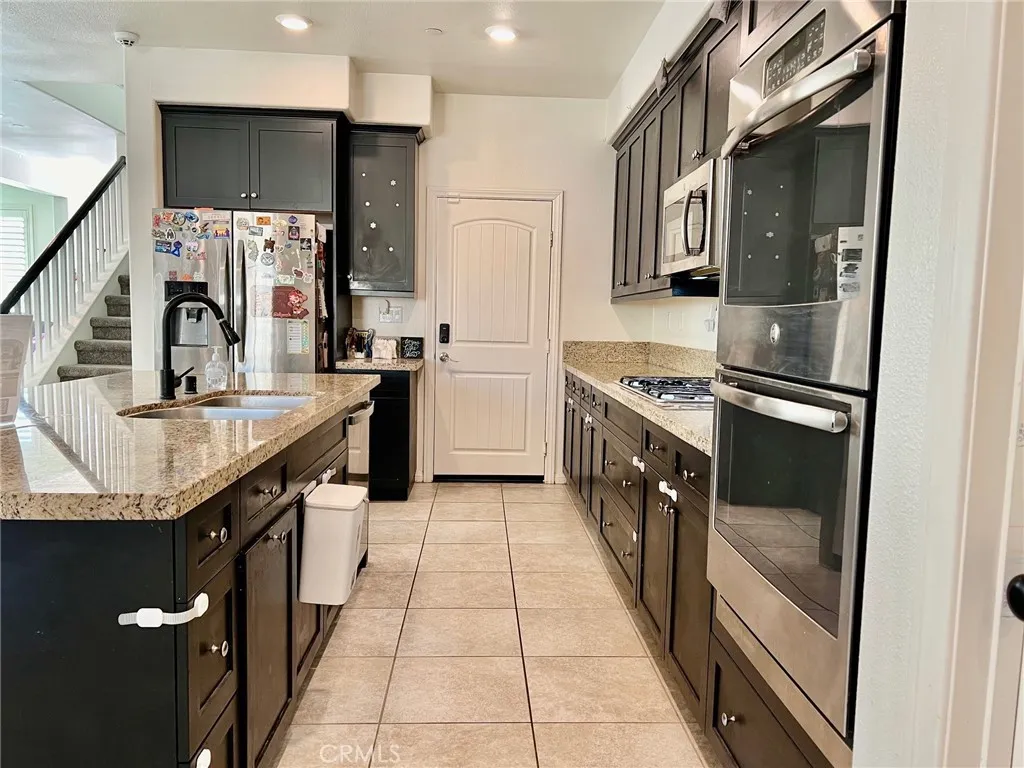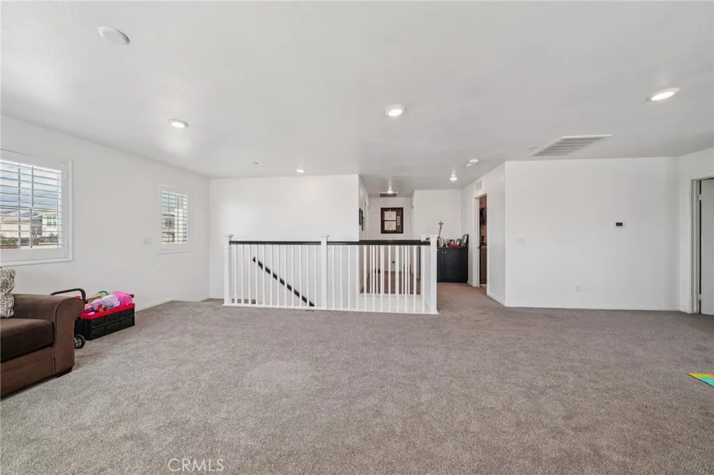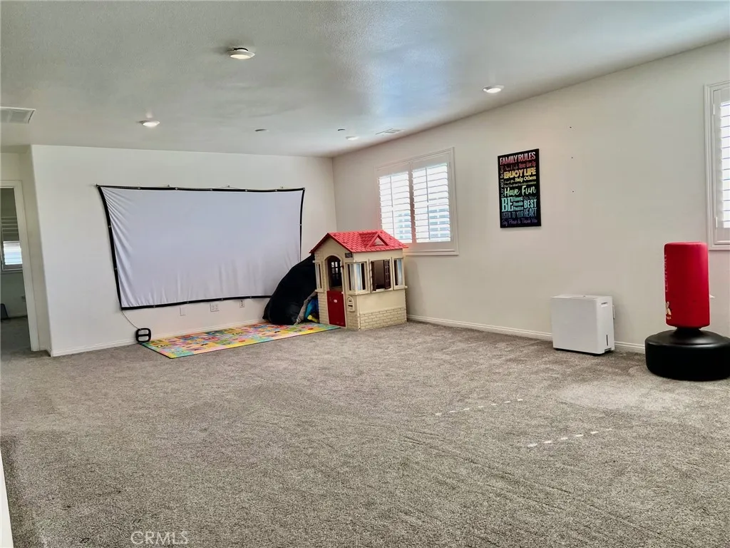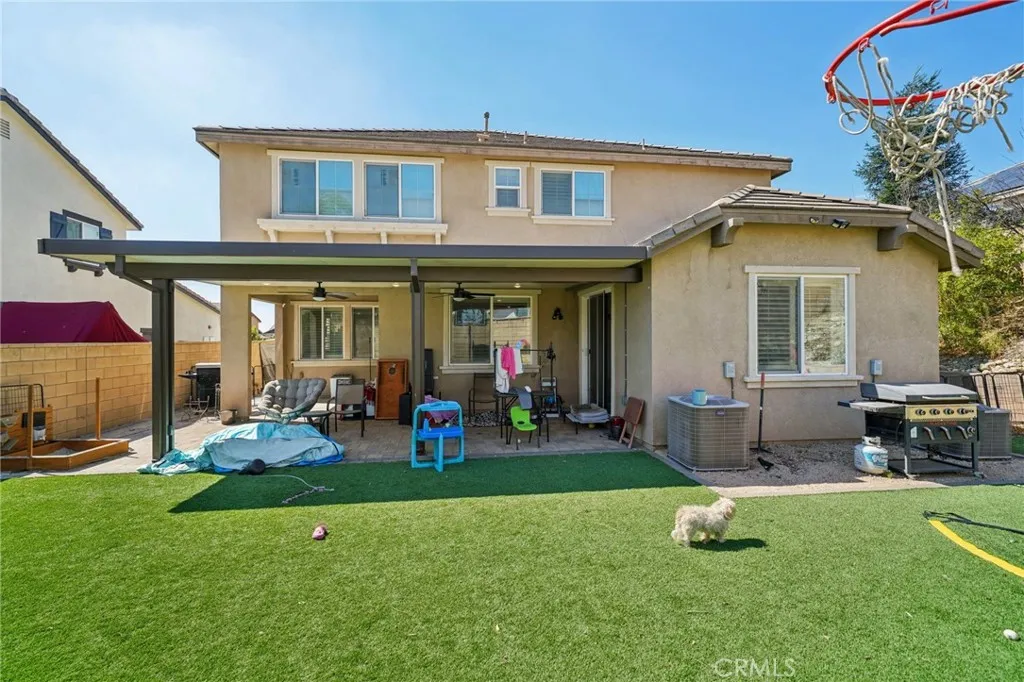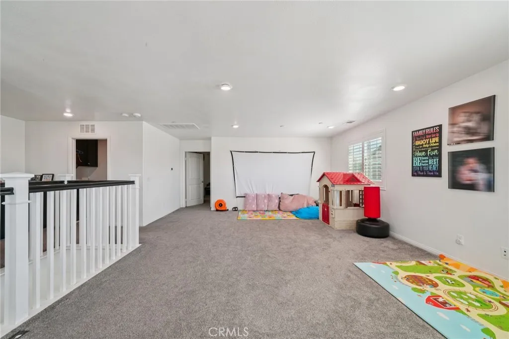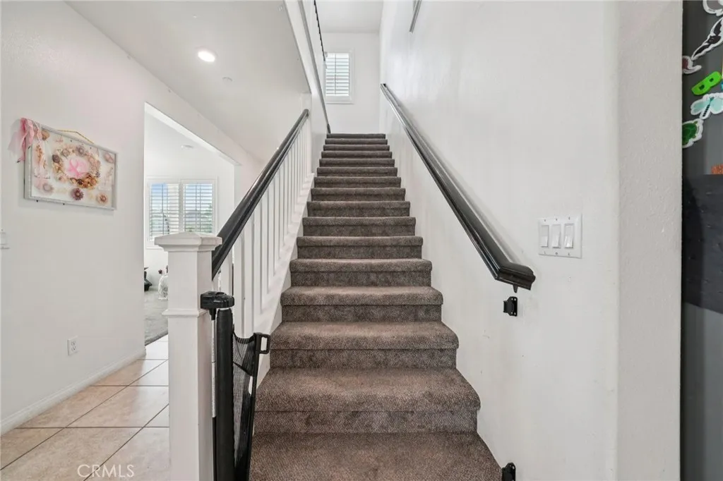 Stunning home built in 2015, perfectly positioned at the end of a cul-de-sac. This residence boasts the most desirable floor plan in the community, featuring four generously sized bedrooms including one conveniently located on the main floor, three full bathrooms, and a massive loft that could easily serve as a fifth bedroom. Upon entering, you are greeted by a formal living room that can also function as an office. The kitchen is a chef's dream, complete with a walk-in pantry, center island with sink, built-in range, and ample cabinet spaceall seamlessly flowing into the dining room and living room, which features a cozy fireplace. Every window is adorned with stylish shutters, and recessed lighting illuminates the entire space. The garage accommodates three cars, complemented by a spacious driveway. The main floor offers a sizable bedroom with sliding door access to the backyard, along with a full bathroom conveniently located nearby. The backyard has plenty of room for your creative landscaping ideas. Upstairs, youll find an expansive loft perfect for a family room, home theater, or gaming area. The laundry room includes a walk-in linen closet for added convenience. The master bedroom is spacious and comes with a luxurious master bath featuring dual sinks, a separate shower and tub, and a large walk-in closet. Additionally, the home is equipped with a solar system, helping to reduce energy bills during the summer months. This beautifully maintained home is ideally located near shopping and provides easy access to the 15 and 210 freeways.
