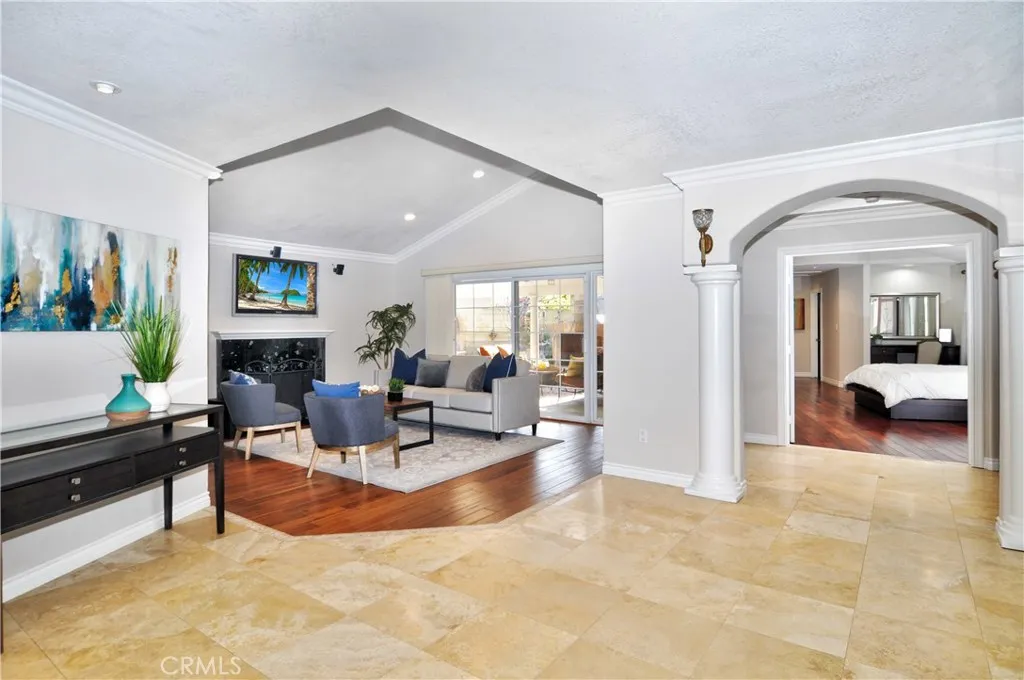 Hurry Come and See This Upgraded Expanded Single-Story Home on An Enormous Large Lot! Great Curb Appeal w/Slate Raised Planters, Slate Walkways, Covered Patio & Parking For 6 Cars Plus! Enter the Grand Foyer w/Travertine Floors & Designer Inlays. A/C, Recessed Lighting, High Baseboards, Panel Doors, Bullnose Corners, Crown Molding Throughout the Home, Travertine & Hard Wood Flooring, Surround Sound and New Electrical Wiring. Living Room Has Vaulted Ceilings, Recessed Lighting, Custom Fireplace w/Wood Mantle, Blue Décor Gas Ice Chips and Slider Doors to Your Private Indoor/Outdoor “Calif Roomâ€Â. Bring the Outdoors Inside w/Skylights, Recessed Lights & a Beautiful Custom Slate Fireplace. The Master Bedroom Also Expanded w/French Doors to the Calif Room, Dual Vanities, Dual Sinks, Deep Spa Soaking Tub/ Separate Shower w/Travertine Surround & Glass Doors. Master Also Has Huge Walk in Closet w/Organizer. Guest Bedrooms All w/Mirrored Closets, Crown Molding & Recessed Lighting. Upgraded Gourmet Kitchen w/Marble Counters w/High Backsplash, Rich Maple Cabinetry, High End Appliances, Large Buffet Counter/Cabinets & Center Inland w/Seating Open to The Large Family Room. Family Room is Windows All Around & Slider Doors To 2 Patios. Backyard has Several Private Areas with fireplace for Entertaining, Raised Planters & Fruit Trees. Indoor Laundry Room, Steps To 1 of 3 Assoc. Pools, Huge Park & Close to Mile Square Park, Shopping, Restaurants and Within the Fountain Valley School District.