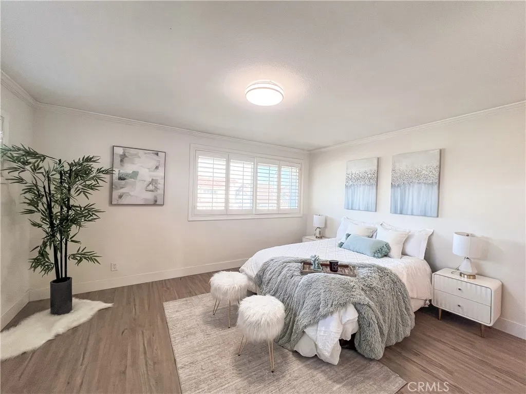 Welcome to this beautifully renovated two-story home, tucked away on a quiet cul-de-sac in the highly desirable Crestwood community of Fountain Valley. This move-in ready home offers a bright and spacious layout, with open living and dining areas that flow seamlessly into a completely updated kitchenfeaturing modern cabinetry, quartz countertops, backsplash, and stainless steel appliancesperfect for everyday living and entertaining. All four bedrooms are located upstairs, including a comfortable primary suite with a walk-in closet and three additional bedrooms that provide flexible space for family, guests, or a home office. Tasteful upgrades throughout the home include new flooring, fresh interior paint, updated bathroom vanities, crown molding, and wood shutters upstairs, reflecting pride of ownership and attention to detail. Major system updates give peace of mind, including a brand-new HVAC system (heating and air conditioning) and a new water heater. The wraparound backyard provides ample space for relaxing, outdoor dining, or entertaining, with patios and a concrete pad ideal for a fire pit or lounge area. Residents enjoy community amenities including a clubhouse, picnic area, and pool just steps away. This home is located in a top-rated school district, and also conveniently close to shopping, dining, parks, and freeway access. With its extensive renovations, updated systems, and prime location, this home offers both comfort and style, making it a perfect opportunity for you seeking a move-in ready property in one of Fountain Valleys most sought-after neighborhoods.