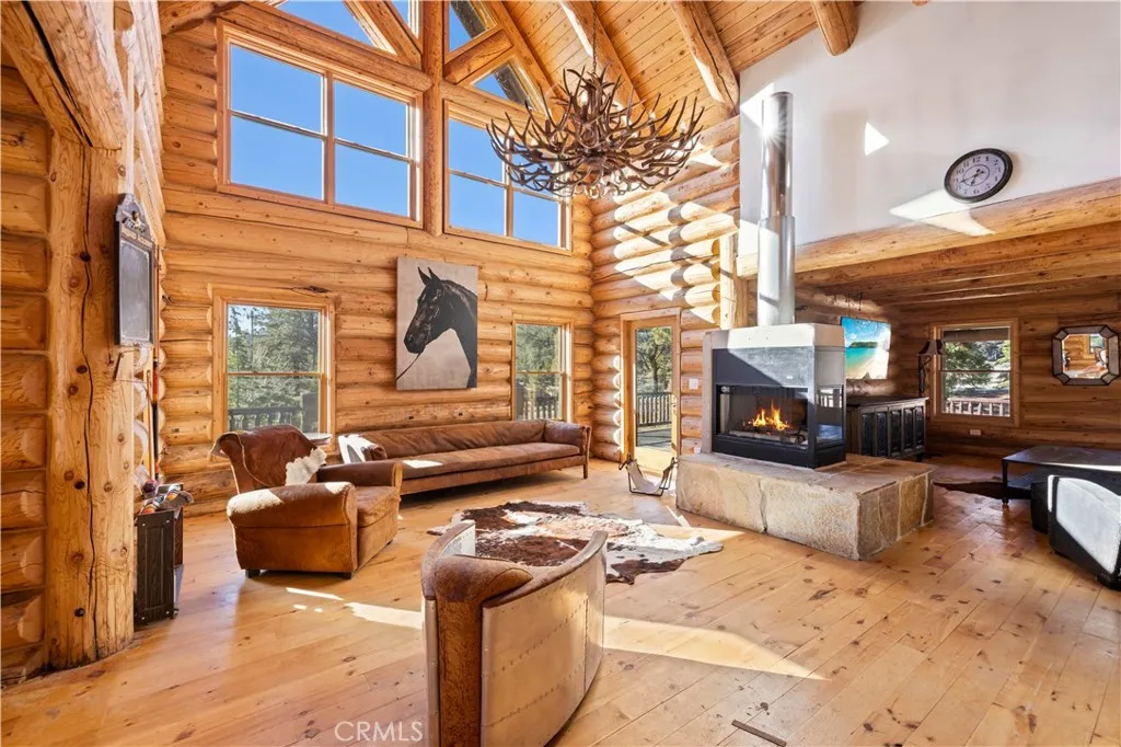 Welcome to this truly magnificent log home nestled on over 5 acres in coveted Cuddy Valley, surveying the Los Padres National Forest with panoramic views and a storied past as a Christmas tree farm, now landscaped, fenced, privately accessed, and served by a shared well; crafted with approximately 12 inch Swedish hand hewn logs, the residence showcases vaulted ceilings, an artisan log staircase, and Pella windows and doors, while an expansive wraparound deck links a covered front porch and covered side porch to an open rear deck for seamless indoor outdoor living; upon entering, a large copper topped bar anchors the gathering zone and opens to the living and dining areas beside the kitchen; the updated layout features dual primary bedrooms on the second floor with a loft between them capturing sweeping views below, and both primaries were recently remodeled to include copper bathtubs, elegant showers, and a dual sided fireplace in each, plus an additional bedroom on the upper level and flexible lofted spaces that create a clear path to configure as many as six bedrooms subject to buyer preferences and any required permits, delivering three bedrooms and four bathrooms at present; approximately 3,755 square feet comprise the main house across the two principal levels, and an additional 2,031 square feet below functions as a substantial finished retreat with multiple rooms, exterior access, and a versatile bonus area ideal for offices, workshops, a gym, media, or guest quarters; enjoy all four seasons with awesome snow in the winter, and with equestrian zoning the acreage pres