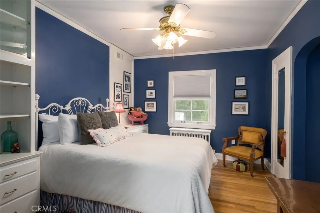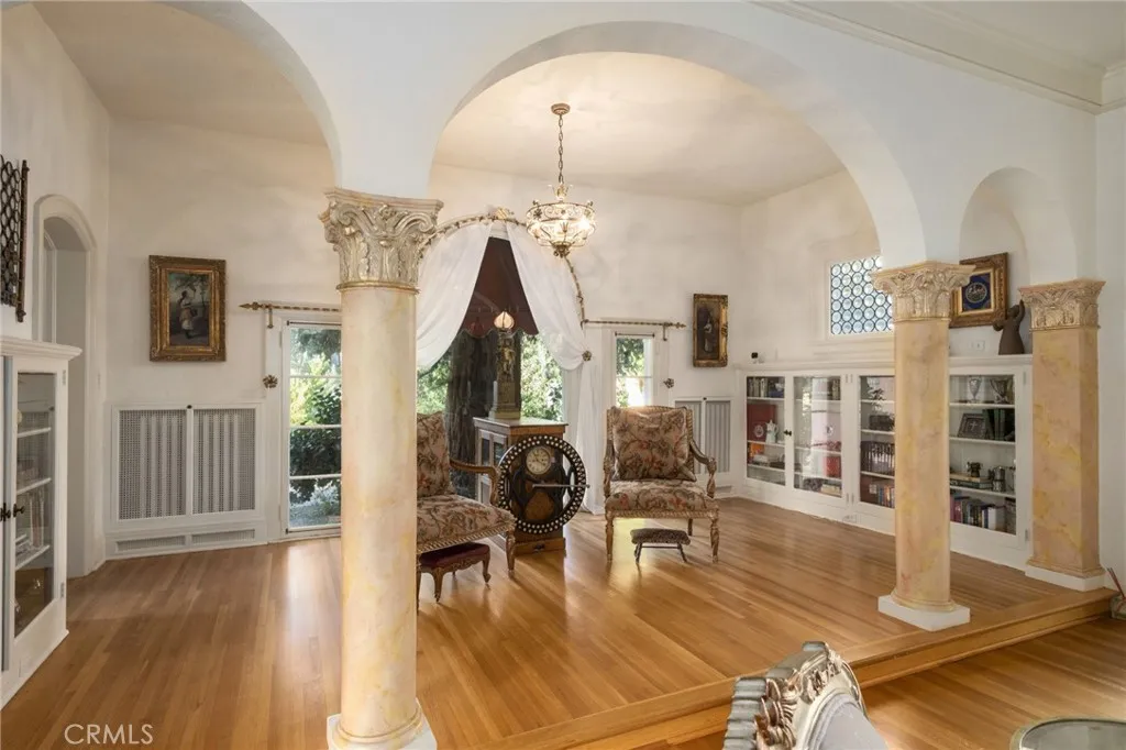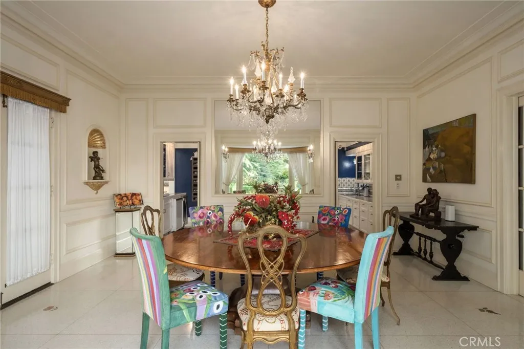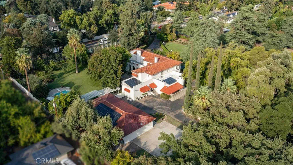 This 1928 Sunset Boulevard Mediterranean Revival residence, situated on a 1.76 acre lot on Christmas Tree Lane in Old Fig Garden, was designed by renowned architect Rafael Lake for the Bernhauer family. As President of the then Fresno Planing Mill Co., Mr. Bernhauer infused his vision and craftsmanship into every detail of this home, which includes Mahogany millwork archways, coffered ceilings and so much more. As you enter thru the Arch Top Mahogany Double Doors, you are greeted by a Grand Foyer and a beautiful curved staircase. To the right is the Spacious Formal Living Room offering a stunning Fireplace, an adjacent elevated sitting space, and to complete this wing of the home, an Isolated Bedroom w/En-Suite Bath. To the left of the Foyer is the grand Formal Dining Room, boasting a Curved Bay Window that floods the room with natural light and can accommodate a large gathering of family and friends. Two Butler Pantries, both with sinks and an abundance of counter space, expand on the spacious Kitchen space for entertaining. A second staircase to the upstairs is situated between the two Butler Pantries, as well as the stairs to the basement which boasts a beautiful Wine Room. The Chef's Kitchen features Exquisite Portuguese Tiles, Wolf Range, Wall Oven, Built-in Refrigerator, Built-in Griddle, Informal Dining Area, and a Pantry. A lovely Studio/Family room is located adjacent to the Kitchen and offers a Fireplace and a wall of Shuttered Windows, which makes it a perfect room for relaxation. The over-sized Laundry Room featuring a Sink, ample Counter Space, Washer/Dryer and