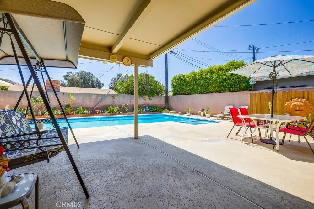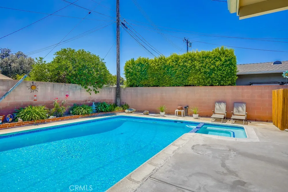 Well Maintained Pool Home on a Beautiful Tree Lined Street- Welcome to this charming 3-bedroom, 2-bath single-level home offering 1,299 sq. ft. plus over 300 sq. ft. of additional living space from a sunken family room addition completed in a workmanlike manner about 50 years ago. Enjoy a sparkling pool and spa, with a finished pool shed complete with wall A/C, a new pool pump, and a recently serviced spa heater are perfect for year round entertaining. Built in the mid 1950s, this property blends timeless character with everyday functionality. The kitchen offers ample cabinet storage and natural light. The primary bedroom has its own en-suite bathroom and large closet, while the other bedrooms are well sized for comfort and versatility. There are original hardwood floors under the carpeting, newer A/C, Heater, and dual pane windows help keep this house comfortable all year long. The direct access 2-car garage offers laundry hookups and convenience. Set on a beautifully tree lined street close to schools, parks, shopping, and dining, this well loved home is ready for its next chapter.