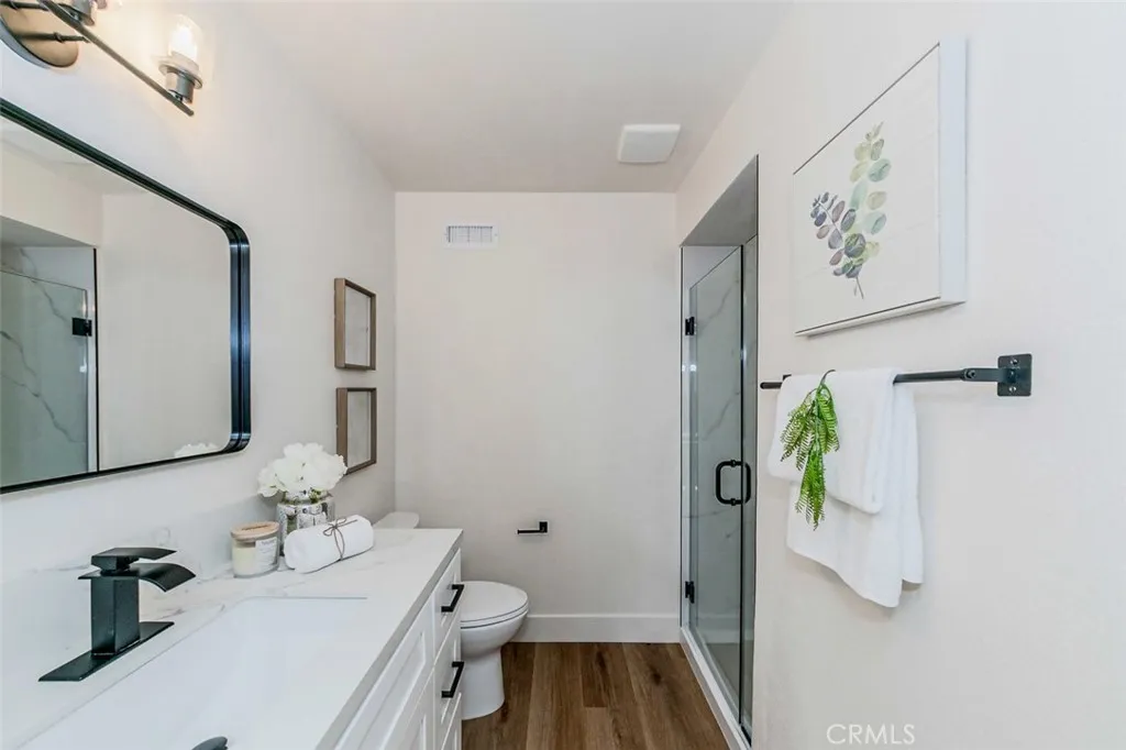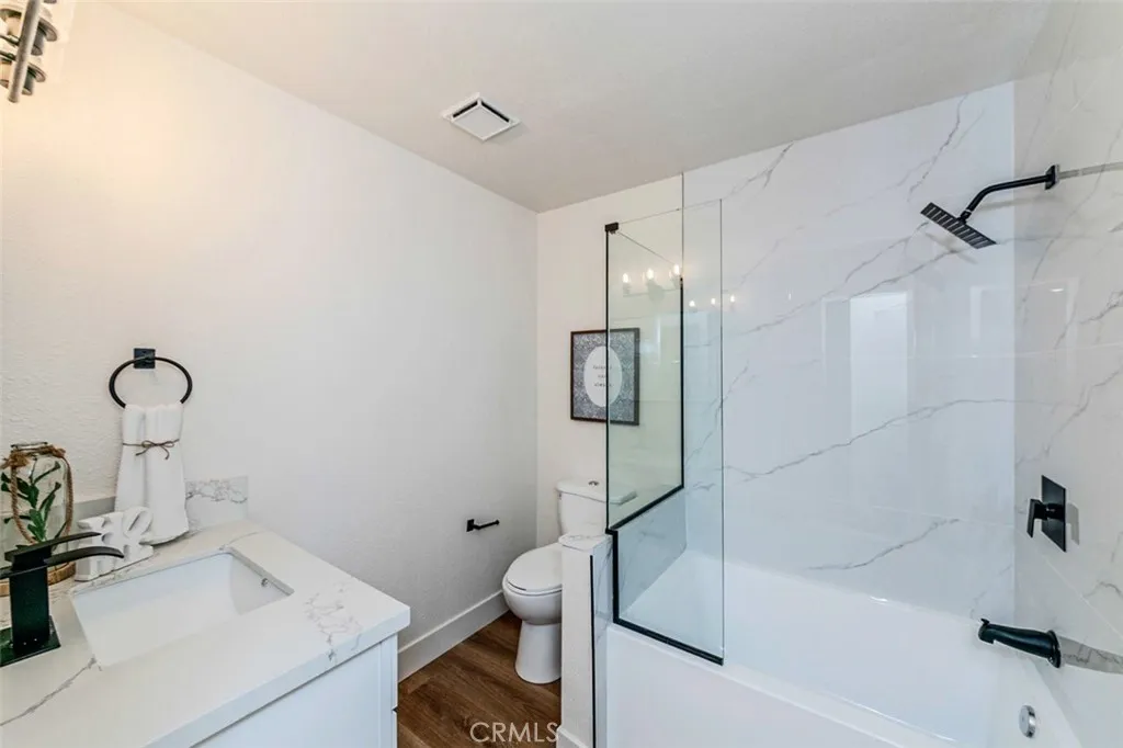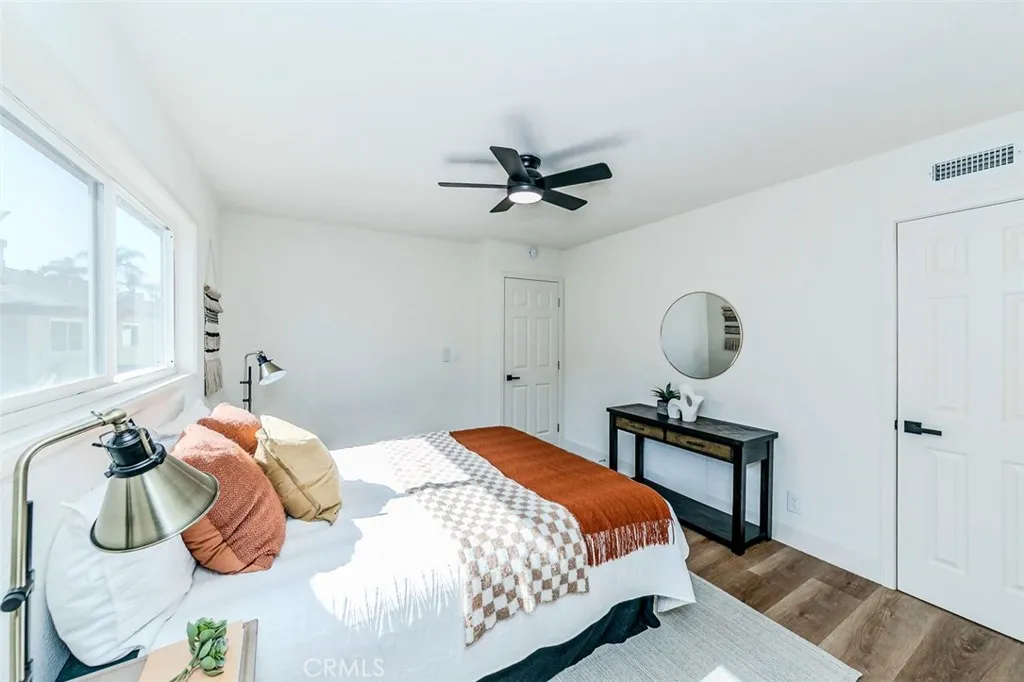 Experience modern living in this fully renovated single-level condo in the sought-after Coco Palms community of Fullerton. Featuring 2 spacious bedrooms, 2 beautifully upgraded bathrooms, and 936 square feet of stylish living space, this move-in ready home is perfect for first-time buyers, downsizers, or investors seeking comfort and convenience. Step into a bright, open-concept layout enhanced with recessed lighting, new laminate wood flooring, and ceiling fan lights in the dining area and each bedroom. The stunning new kitchen showcases Quartz countertops, custom cabinetry, stainless steel appliances, a sleek stainless-steel sink, and a modern faucetideal for everyday cooking and entertaining. The bathrooms are completely transformed with elegant finishes, including a new bathtub with a frameless glass enclosure, a walk-in shower in the primary suite, and contemporary vanities and fixtures. Enjoy year-round comfort with central heating and a wall-mounted A/C unit. A detached one-car garage provides added storage and parking convenience. Residents of Coco Palms enjoy beautifully maintained landscaping and access to a refreshing community pool. This prime location is just minutes from Downtown Fullerton, Cal State Fullerton, and the highly acclaimed Troy High School. Move right in and start enjoying this turnkey home that blends style, comfort, and locationschedule your private tour today!