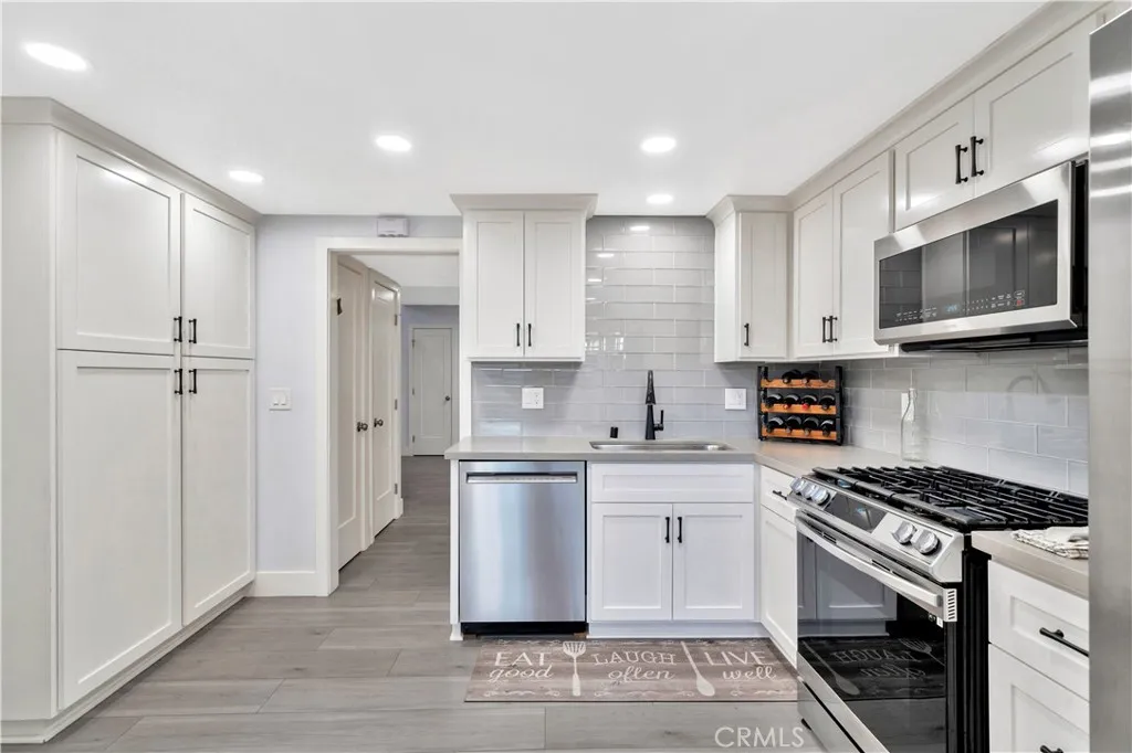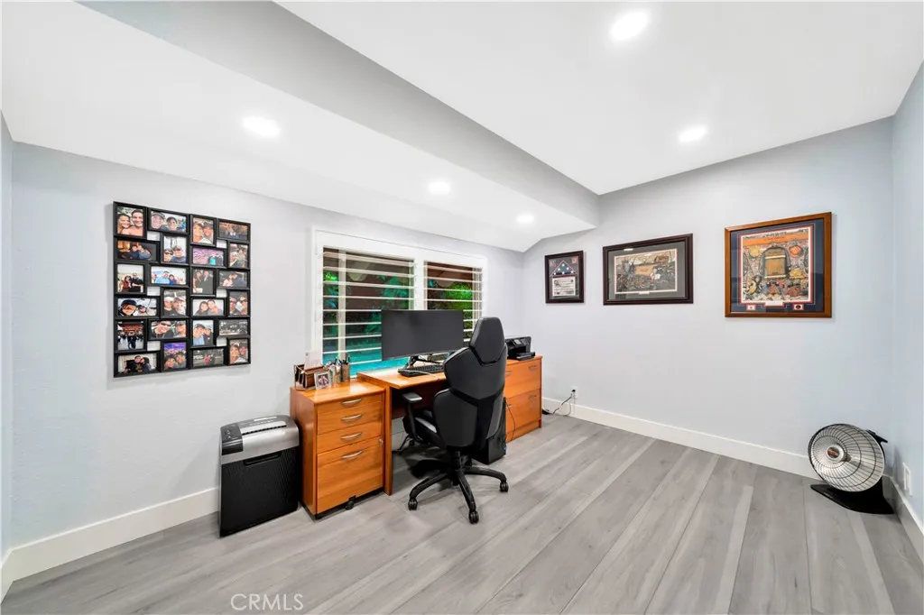 Fully remodeled 3 bedroom with attached large office/bedroom off of primary bedroom (could be used as 4th bedroom). All new kitchen cabinets, all new quartz counter tops, new stainless appliances, new vinyl plank floors, new 6-inch baseboards, new solid core interior doors with new hardware, new outlets, new switches, new bathroom vanities, new quartz counter tops, recessed LED energy efficient light in every room, new double paned windows, new plantation shutters, new A/C, 2-car direct access garage, 240 volt car charging outlet, gated community, pool, spa, low HOA $400, laundry in garage. This is a perfect home.
