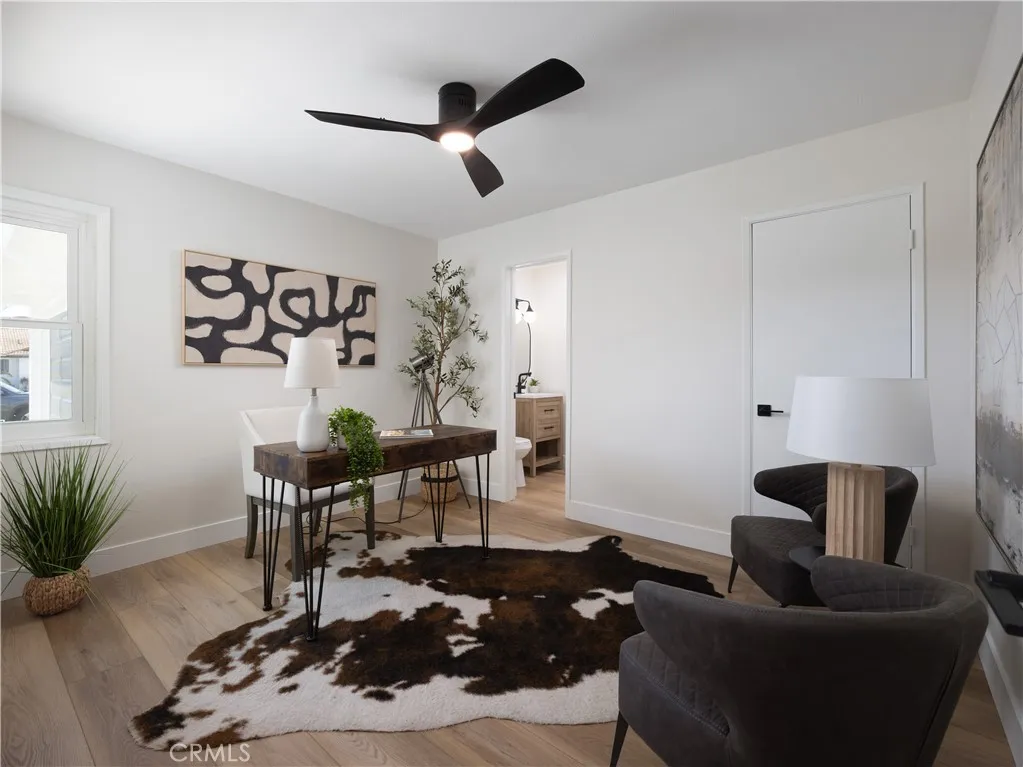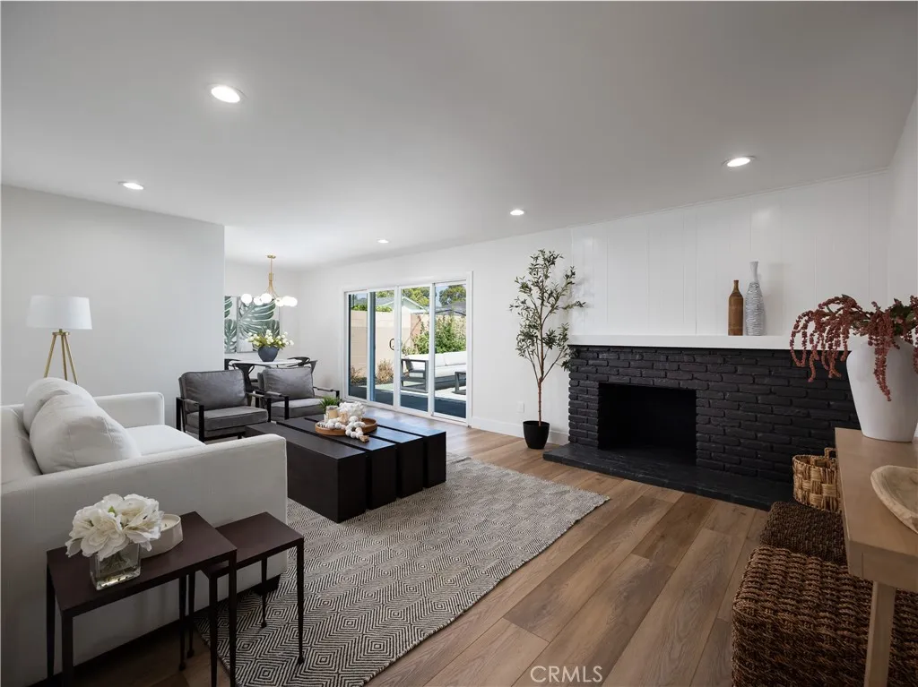 Welcome to 12592 Palomar West, Garden Grove a beautifully reimagined 4-bedroom, 2-bathroom single family detached residence where refined design, modern comfort, and effortless California living come together in one exceptional offering. Fully remodeled with a sophisticated eye for detail, this turnkey home showcases an elevated aesthetic throughout, blending warm natural textures with clean contemporary finishes. Step inside to discover living spaces filled with natural light, enhanced by wide-plank luxury vinyl plank flooring throughout, recessed lighting, newly updated fixtures, and a striking black brick fireplace that aceents the main living area with dramatic style. The easy-flowing floor plan creates a seamless connection between the living room, dining area, and kitchen, connected to the outdoors offering an ideal setting for both everyday living and stylish entertaining. The designer kitchen is a standout, thoughtfully appointed with new quartz countertops and backsplash, cabinetry refreshed in a rich designer hue, new sleek hardware, and new stainless steel appliances, including an oven with air fry feature and a touch on and off faucet in matte black finish. A dedicated dining area framed by sliding glass doors to the large backyard invites effortless indoor-outdoor living, while the layout offers both beauty and functionality. This home also features a dedicated interior laundry area with built-in shelving and additional storage, enhancing its polished design. Retreat to the spacious bedrooms, each thoughtfully refreshed with a bright, airy feel and versatile l