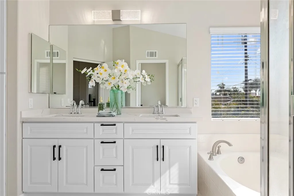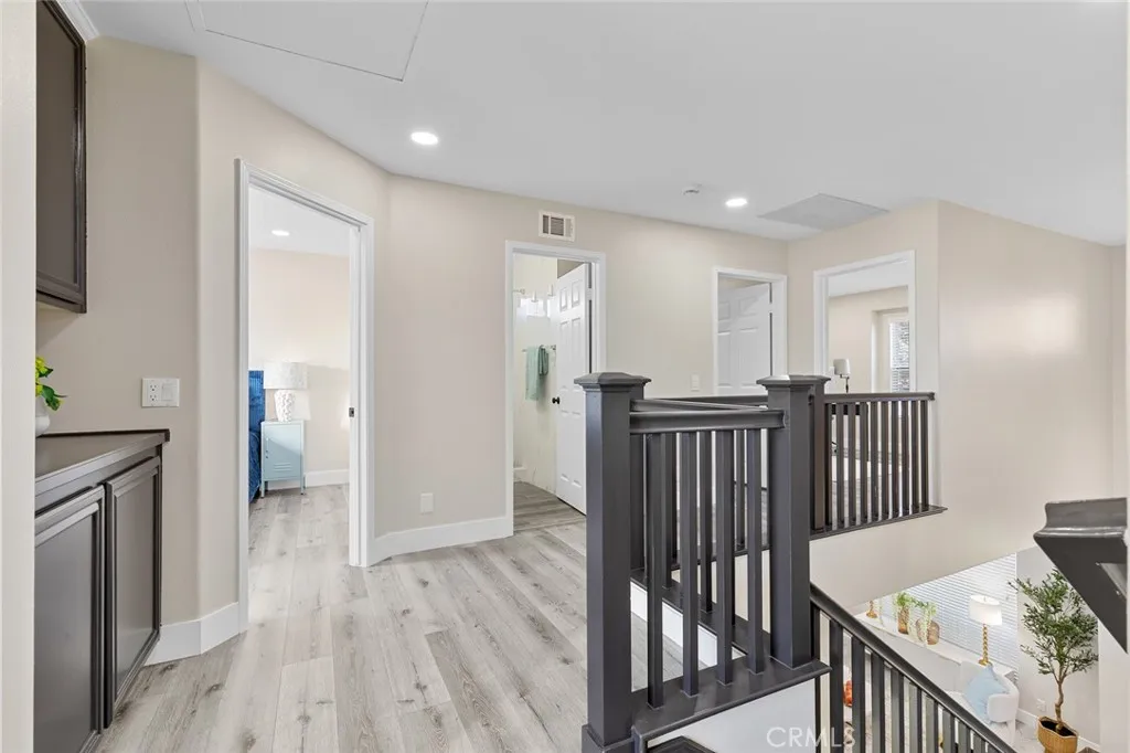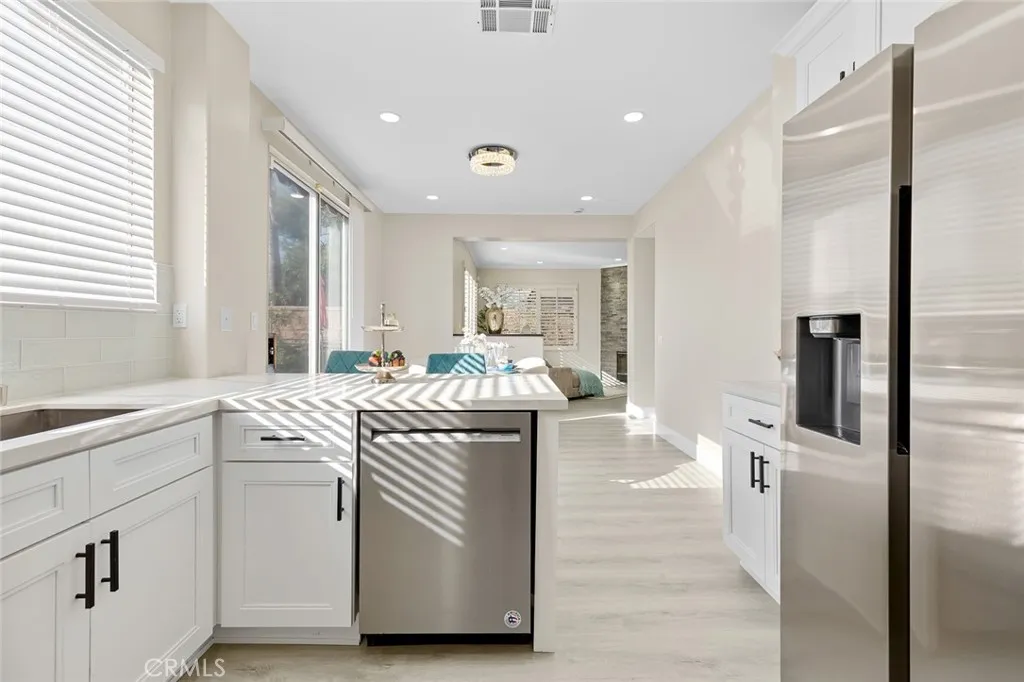 Welcome to this beautifully residence in a desirable gated community in the heart of Garden Grove. This home offers luxury, privacy, and convenience. This stunning 4-bedroom, 2.5-bathroom residence offers 2,015 sqft of living space on a 4,112 sqft lot and has been UPGRADED to deliver modern comfort and timeless style. Step inside to a bright and inviting open floor plan, perfect for both everyday living and entertaining. Every detail has been thoughtfully designed to enhance flow, functionality, and aesthetic appeal. The beautifully renovated kitchen, featuring high-quality vinyl flooring, seamlessly flows into the spacious family room, perfect for gatherings. A cozy fireplace adds warmth and charm to the space. Downstairs, a convenient guest bathroom with elegant vinyl flooring offers added convenience. The entire home is adorned with premium finishes, including high-quality vinyl floors, providing both durability and style. Upstairs, you'll find four generously sized bedrooms. The luxurious master suite boasts a large walk-in closet and an en-suite bathroom with a relaxing soaking tub, a step-in shower, and dual sinks. An individual laundry room on the second floor adds to the home's functionality. Step outside to your private backyard oasis, featuring beautiful pavers and an array of fruit trees. This serene space is perfect for enjoying your morning coffee or entertaining guests. Don't miss the opportunity to make this meticulously remodeled home yours. Schedule a viewing today and experience the perfect blend of elegance and comfort in the Lori Lane community!