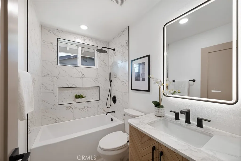 Welcome to this EastGate neighborhood Gem! 5732 Belgrave Ave is a beautifully upgraded home located in the prestigious pocket of West Garden Grove. Renovated with over $180,000 in high-quality improvements, this property offers modern finishes, thoughtful design, and true move-in-ready convenience. The heart of the home features a fully redesigned open-concept kitchen with a large custom island, quartz countertops, soft-closing cabinetry, and top-of-the-line stainless-steel appliances. New luxury vinyl flooring extends throughout the home, complemented by new interior doors, upgraded baseboards, modern fixtures, double-pane windows, and recessed lighting set into freshly scraped ceilings. The living area includes a newly designed fireplace that adds a clean, contemporary focal point. The primary suite has been transformed with a fully customized, expanded walk-in shower featuring premium tile work, a frameless glass enclosure, upgraded fixtures, and a thoughtfully reconfigured layout to maximize space and comfort. This level of detail continues throughout the home, including a tankless water heater, new furnace and air conditioner, ceiling fans in each room, and newly completed landscaping designed for low-maintenance curb appeal. Situated in a desirable interior tract, the home offers convenient access to major freeways while maintaining a peaceful residential feel. As an added benefit, the property is located within a highly regarded, top-rated school systemfurther enhancing its appeal for long-term value and quality of life.
