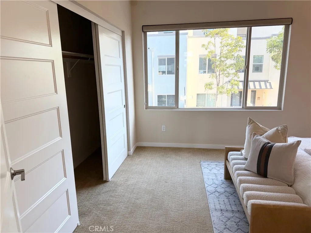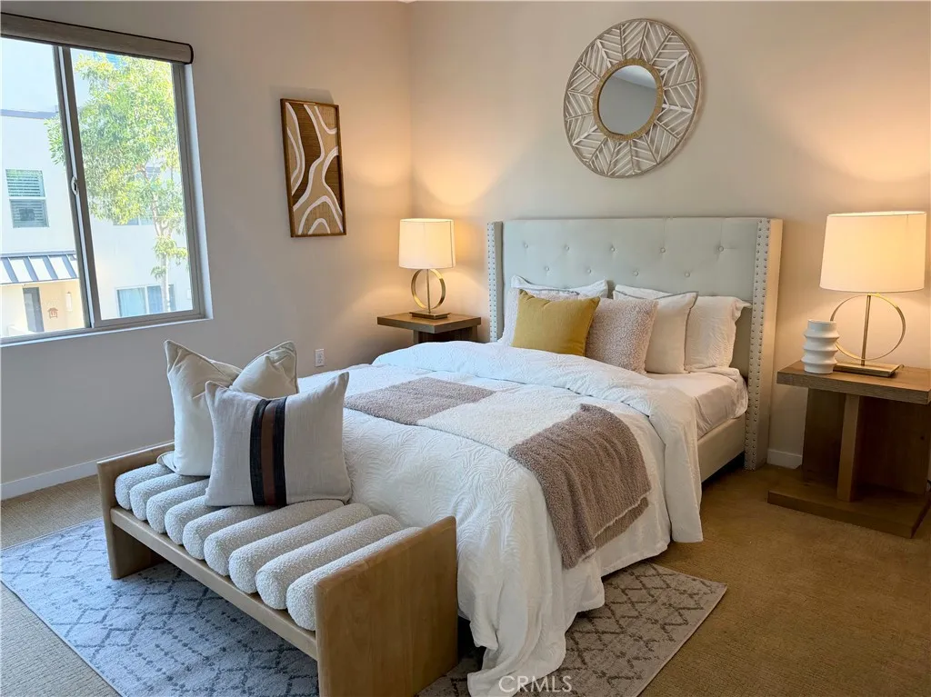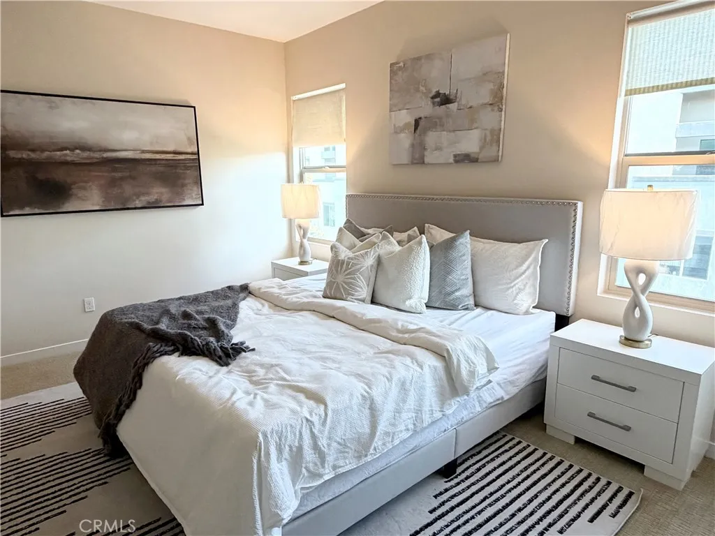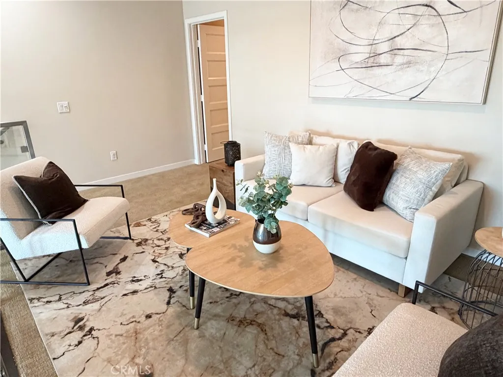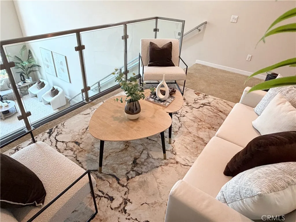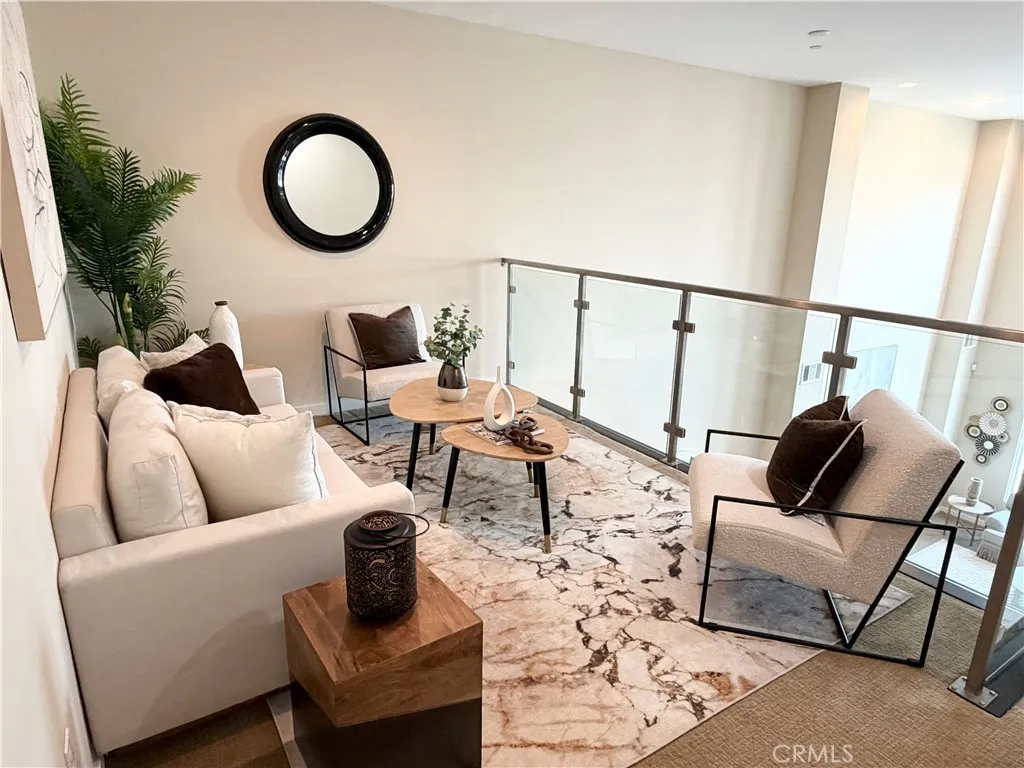 Rare opportunity to own a modern tri-level live/work residence in Artesia Square with 2 oversized bedrooms, 2.5 bathrooms, a loft, ground-level flex space, and a side-by-side attached 2-car garage. The ground level offers a versatile flex area ideal for a home office, gym, studio, or creative workspace, along with a convenient half bathroom and a large storage closet tucked beneath the stairs. The garage is accessed through an automatic gate, adding both convenience and privacy. The second floor is the main living level and features soaring ceilings, expansive windows, and an open-concept design filled with natural light. The kitchen includes quartz countertops, stainless steel appliances, ample cabinetry, and a breakfast bar that connects seamlessly to the dining and living areas, creating an ideal setup for everyday living and entertaining. The second floor also includes the second bedroom, a full bathroom with shower in tub, and a laundry closet. The third floor is dedicated to the primary suite and loft, creating a private upper-level retreat. The primary bathroom features double sinks, a soaking tub, and a separate walk-in shower. Additional highlights include central air, solar heating, a dishwasher, disposal, microwave, refrigerator, tankless water heater, recessed lighting, modern finishes, and a blend of carpet, tile, and engineered wood flooring throughout. The community offers guest parking at the front, and the home is located in the South Bay region of Los Angeles County with convenient access to major transportation routes, shopping, dining, and everyday ameni