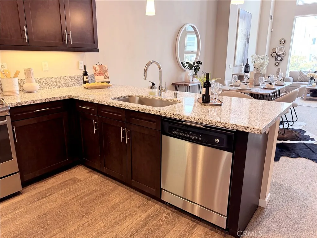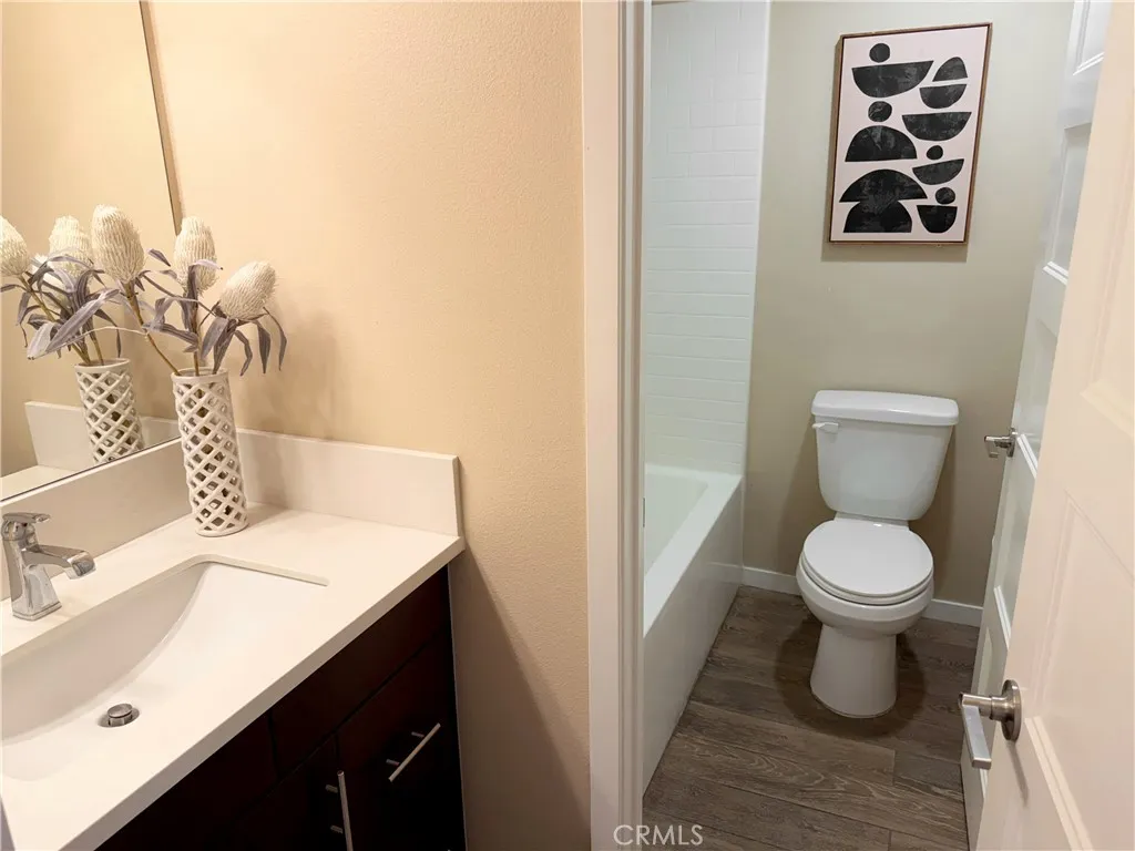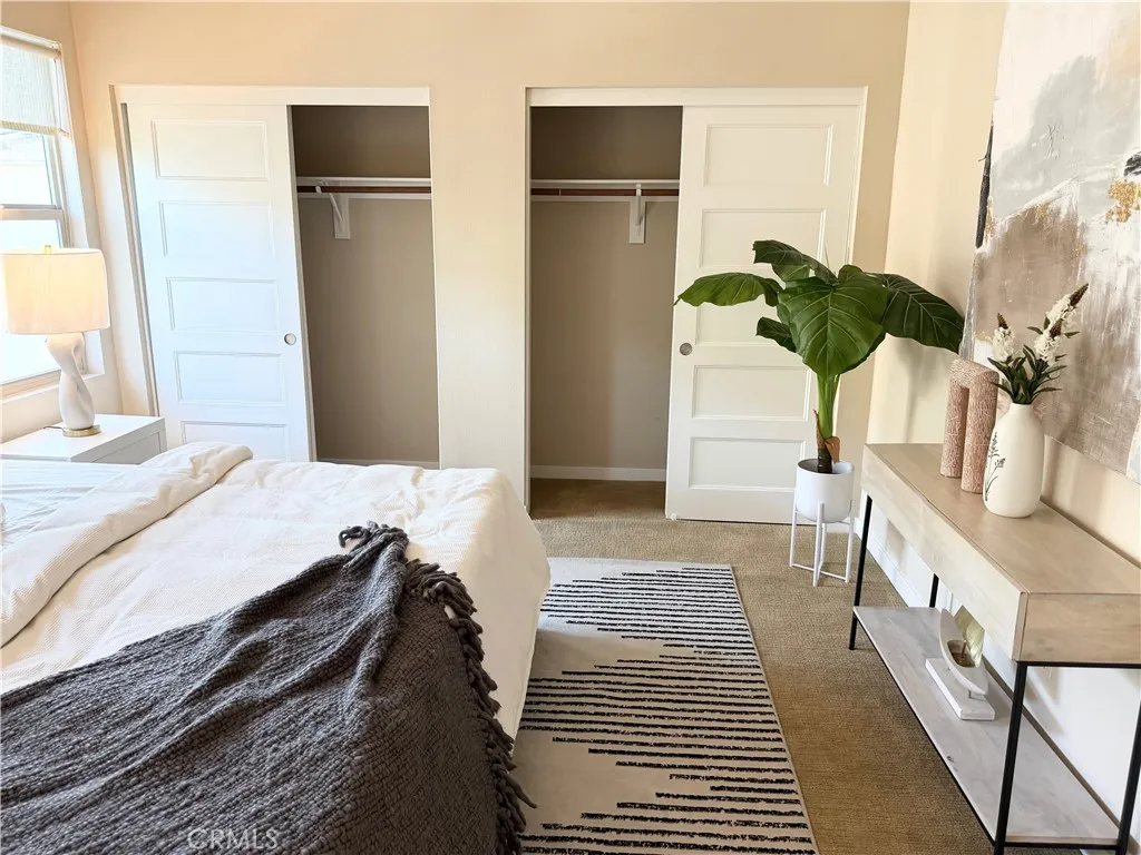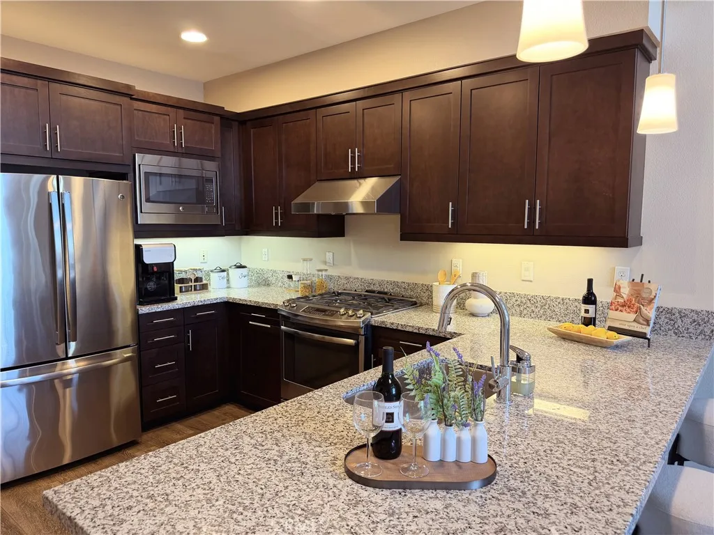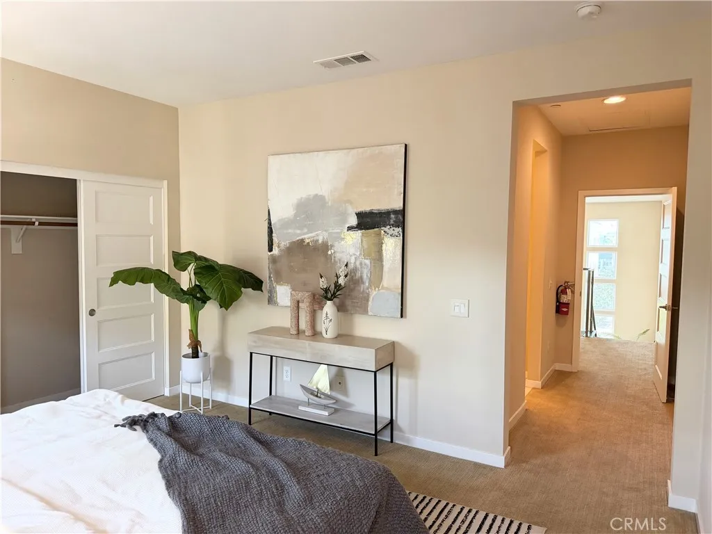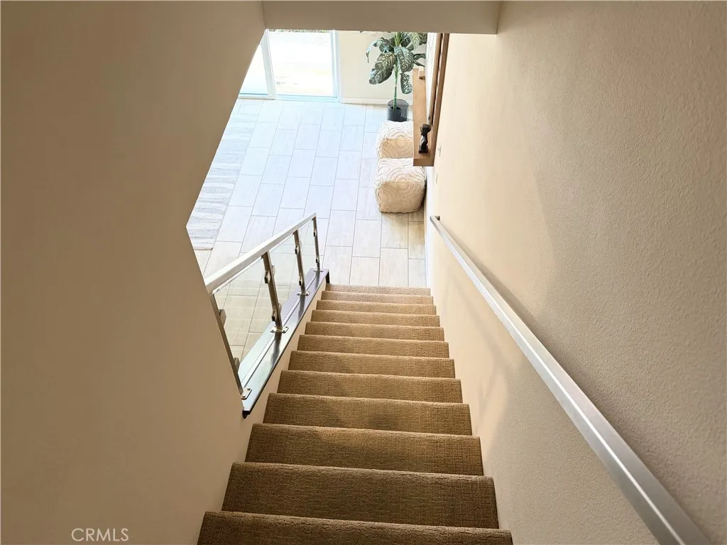 Rare opportunity to own a modern tri-level live/work residence in Artesia Square with 2 oversized bedrooms, 2.5 bathrooms, a loft, ground-level flex space, and a side-by-side attached 2-car garage. The ground level offers a versatile flex area ideal for a home office, gym, studio, or creative workspace, along with a convenient half bathroom and a large storage closet tucked beneath the stairs. The garage is accessed through an automatic gate, adding both convenience and privacy. The second floor is the main living level and features soaring ceilings, expansive windows, and an open-concept design filled with natural light. The kitchen includes quartz countertops, stainless steel appliances, ample cabinetry, and a breakfast bar that connects seamlessly to the dining and living areas, creating an ideal setup for everyday living and entertaining. The second floor also includes the second bedroom, a full bathroom with shower in tub, and a laundry closet. The third floor is dedicated to the primary suite and loft, creating a private upper-level retreat. The primary bathroom features double sinks, a soaking tub, and a separate walk-in shower. Additional highlights include central air, solar heating, a dishwasher, disposal, microwave, refrigerator, tankless water heater, recessed lighting, modern finishes, and a blend of carpet, tile, and engineered wood flooring throughout. The community offers guest parking at the front, and the home is located in the South Bay region of Los Angeles County with convenient access to major transportation routes, shopping, dining, and everyday ameni