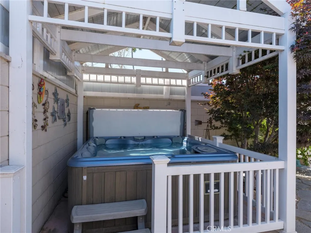 Welcome to this beautifully maintained 4 bedroom, 3 bath home located in the highly sought-after El Camino Village. Offering approximately 1,700 sq.ft. of living space on a generous 5,800 sq.ft. lot, this property combines charm, functionality, and modern upgrades in one exceptional package. The curb appeal is instantly inviting with its flagstone-accented front, turf landscaping for low maintenance, and a cozy front porchperfect for enjoying your morning coffee or tea. Step inside to an expansive, open floor plan where the living room features a fireplace with custom granite finish and multiple windows that fill the space with natural light. The home includes two main suites, each with its own private bath. The front bedroom suite offers convenience and privacy, while the rear suitethe largestopens to the backyard through sliding doors. A large bay window gives the front suite classic charm, and the short hallway is outfitted with thicker walls to provide extra noise dampening and adding comfort to the space. The dining area flows seamlessly into a breakfast nook and updated kitchen, complete with tile flooring, granite countertops, and refinished hardwood cabinetry. Original hardwood floors throughout the home add timeless character. The backyard is a true retreat, boasting a covered patio with flagstone accents, a Sundance spa, Trex decking, and a custom-built BBQ station with ample counter space and electrical connections for rotisserie or appliances. The extra-large garage and attached workshop (approx. 800 sq.ft.) provide abundant storage, room for projects, or the po