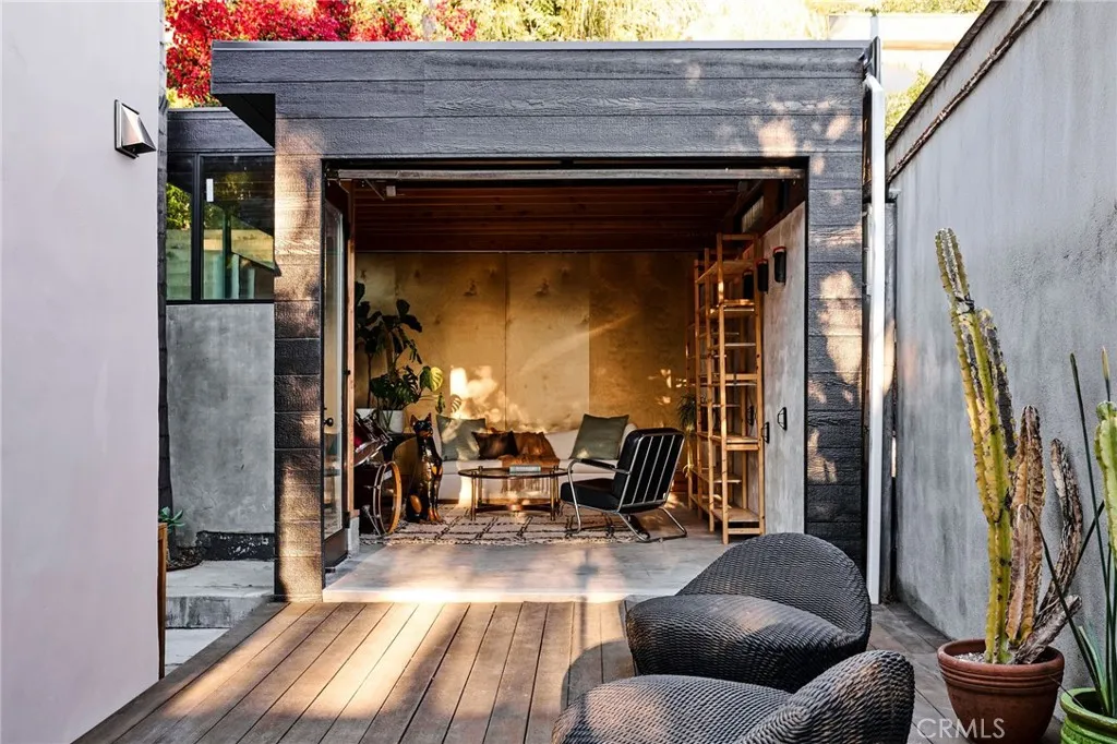 Tucked above the hustle and bustle of it all, this rare architectural home will inspire you. For the last 17 years a notable LA artist proudly built out 1675 sf of tranquil living space for her family including a light filled studio. Recently fully remodeled by design firm Gibson House, the collaboration resulted in an amazingly unique offering which rarely comes to market. Within youll find new oak herringbone floors, limewash painted walls and two gorgeous remodeled full bathrooms. The open floor plan is highlighted by a custom 16ft whole wall window system which slide to an open air sensation inside the kitchen connecting the mature garden to the interiors. Sitting on an 8000 sf lot are multiple terraced gardens and bocce ball court with fully mature trees including apple, fig, olive, and apricot, mature cacti, yucca, agave, bougainvillea, ficus hedge, with UCDavis drought tolerant lawn in the backyard. Surrounding the home is a deck which wraps around entire property, multiple outdoor sunny dining areas as well as the 350 sf fully plumbed bonus space complete with fisher paykel refrigerator and stove top unit, and washer dryer. Other features such as central water filtering, metal fire retardant roofing, central electrostatic air cleaner, 120v & 240v 200Amp panel, 240v Level 2 EV charger, attic heat extraction fan (avoids having to use AC most of the time during summer) round off some of the additions the owners have added over the years. Just down the hill youll find all Glassell Park has to offer: Bubs and Grandmas, Dunsmore, Solarc, Wife and the Somm, Loquat, the OG