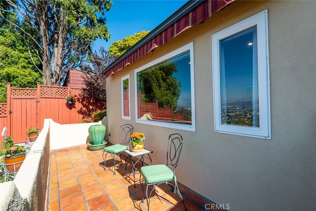 Rare Double Views, Elegant 1920s Spanish Revival in Coveted Adams Hill - - - Perched high above the street in Glendales Adams Hill neighborhood, this 1920s Spanish Revival home captures breathtaking views from nearly every room from sunrise over the hills to glowing sunsets to the west. Its rare double-view orientation fills the interiors with natural light throughout the day, while timeless architectural details harmonize with thoughtful, high-quality updates. The home exudes pride of ownership, where every surface has been carefully renewed with taste and craftsmanship. A charming living room with a classic barrel ceiling, handsome fireplace, and sweeping western views anchors the main living space. The spacious floor plan includes both a formal dining room overlooking the hills and a cheerful breakfast nook with morning light and eastern vistas. Even the kitchen sink enjoys a stunning view. The primary suite offers an updated ensuite bath, while the office or den counted as the fourth bedroom impresses with high ceilings, skylights, and an elegant eyebrow window. Outdoor living is equally enchanting: Saltillo-tiled patios complement lush, meticulously maintained gardens. Enjoy two distinct entertaining terraces a tranquil east-facing patio perfect for morning coffee and a west-facing terrace ideal for unwinding at sunset. Another large patio rests gracefully above the detached two-car garage, offering yet another serene retreat. Practical upgrades include copper plumbing, central heat and air, and dual-pane windows. Additional storage spaces adjacent to the crawlspac
