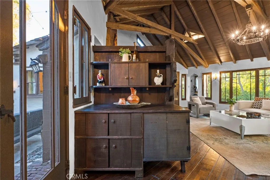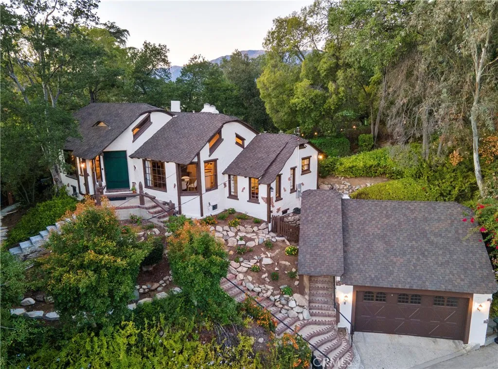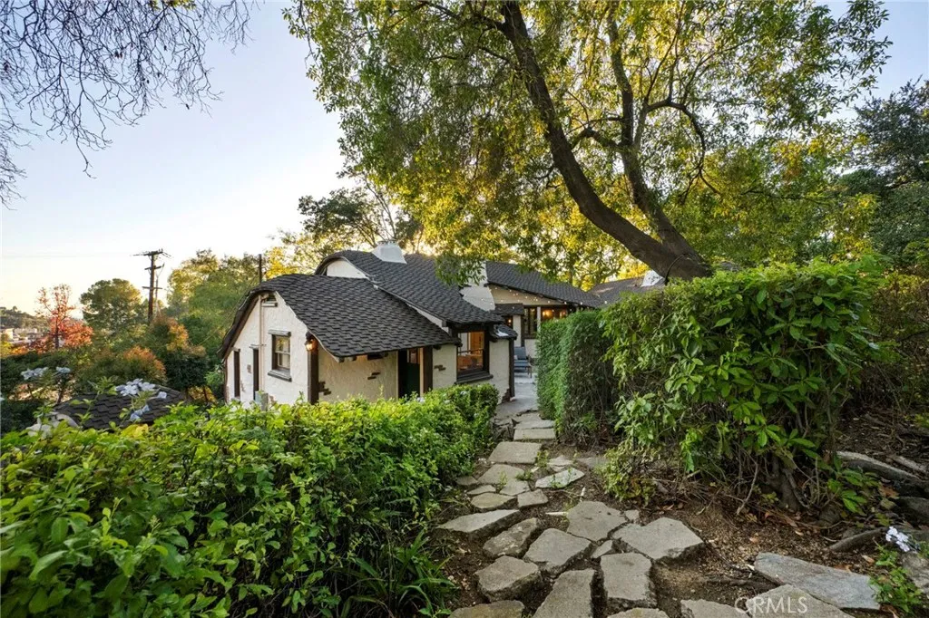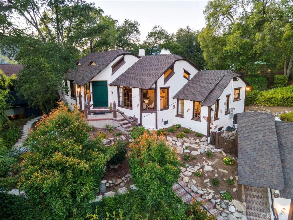MILLS ACT APPROVED!! Home is now eligible for significant property tax reduction! The MacBride House (1924) A rare 3-bedroom, 2-bathroom, 1,552-square-foot Storybook Tudor tucked into the trees of Glendales Verdugo Woodlands, revived through a meticulous two-year restoration that brought back its original soul while introducing modern comfort. Approved for the Mills Act, this home offers not only a connection to Glendales architectural heritage but also significant long-term property-tax savings. Built by an English craftsman who once worked for early Hollywood film studios, this home feels like it was lifted straight from Disneys Snow White, with whimsical rooflines, arched doorways, and hand-carved details that radiate storybook magic. Inside, vaulted open-beam ceilings and leaded-glass windows fill the grand living hall with soft light that glows across refinished wood floors. The clinker-brick inglenook fireplace, flanked by original hand-carved benches, stands as the heart of the home and a masterpiece of 1920s design. The kitchen and baths have been restored with an artists restraint, new time period inspired wallpaper, reglazed sinks, new distressed vintage flooring in bathrooms and kitchen and new classic fixtures chosen in a way to preserve the homes authenticity. Behind the beauty, every system has been thoughtfully modernized, updated plumbing, updated electrical, dual-zone HVAC, and an EV-ready two-car garage with a finished attic loft perfect for a creative studio or private retreat. The 10,226-square-foot lot unfolds into a private paradise of meandering gard