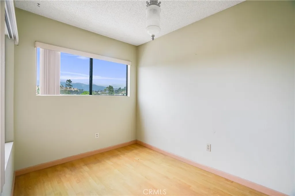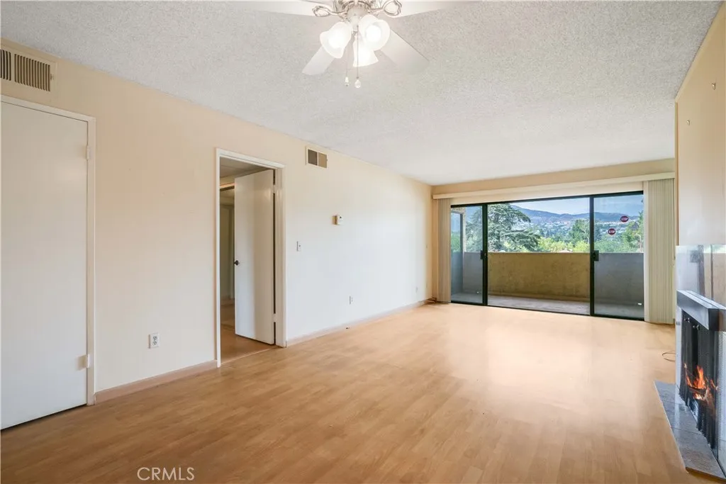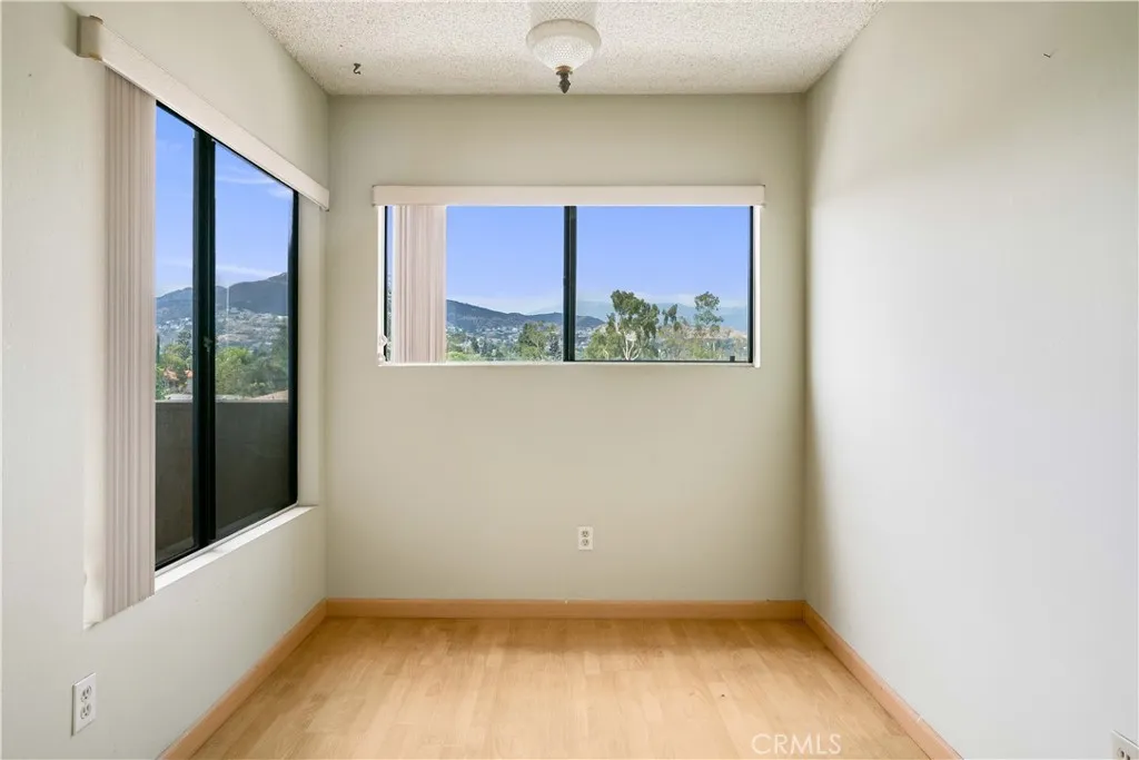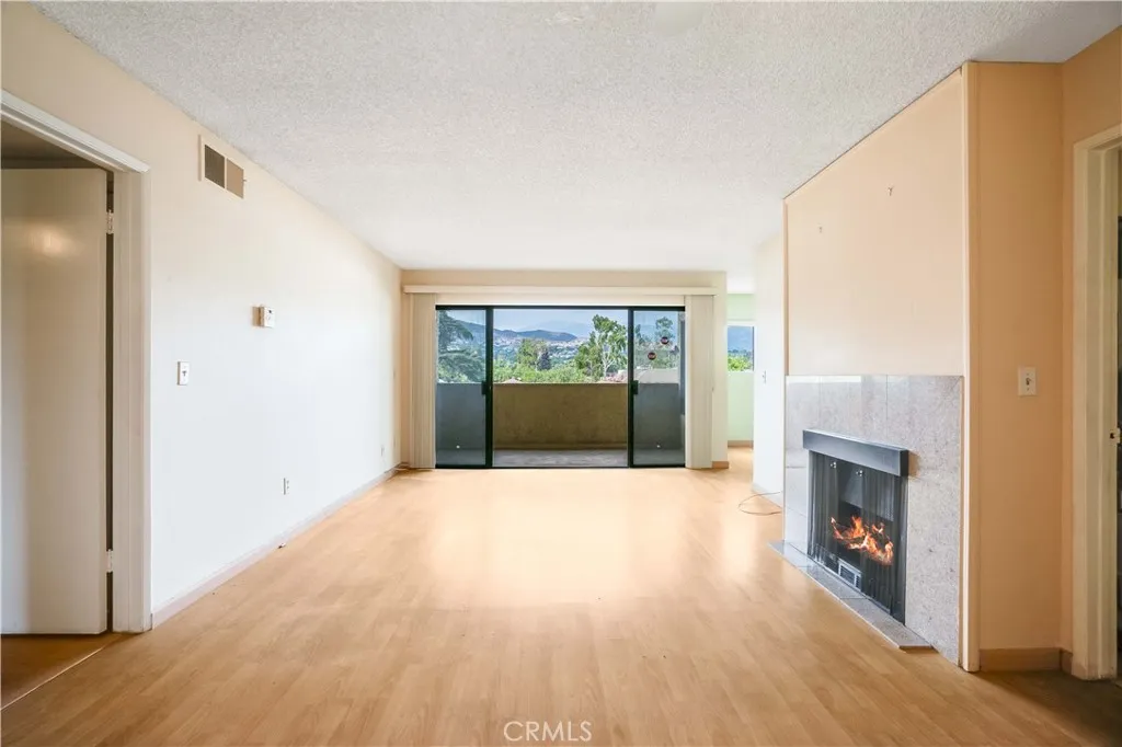 Mountain and Palm tree top views welcome you as you enter this Piedmont Park Villas Top Floor unit bathed in sunlight with a large balcony. Just outside this complex is cozy Piedmont Park on a tree lined cul-de-sac street. This unit has 1 bedroom plus a den that can be used as an office, spare room or lounge with plumbing already attached. As you enter the vibrant double doors your eye catches the views of the Verdugos and beyond. The living room has a focal fireplace and is adjacent to the galley kitchen equipped with appliances and an inside stacked laundry. The glass sliding doors and windows offer picturesque views of the treetops from the dining area, bedroom and living area. Over 960 square feet of living space are adorned with warm laminate wood flooring. Parking is accessed with ease by an elevator. The Piedmont Park Villas offers great amenities such as the resort style pool and recreation room with kitchenette available to host your guests. Gated and secure access are just one of the few amenities in the complex. A true Glendale gem built in 1975 offering owners security, peace, elegance, and most importantly a central location to the best the city has to offer. Close to Whole Foods, Skaf's Lebanese Grill, Fish King, the highly anticipated Erewhon, and the Americana at Brand. Also located near the 2 and 134 freeways.
