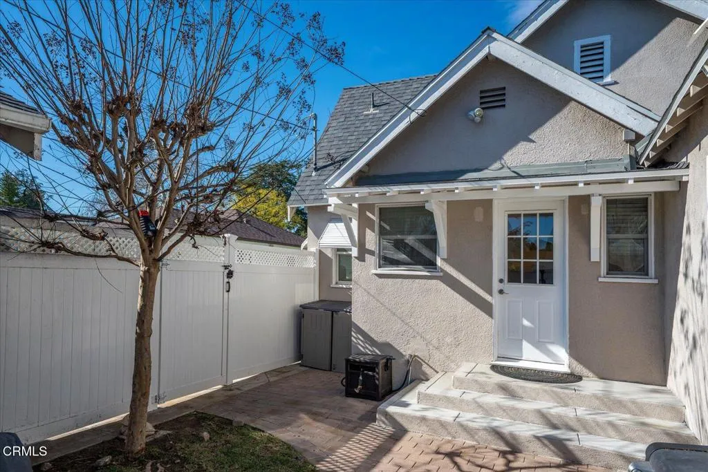 This charming 3 bedroom 3 bath home is crafted to complement modern living--thoughtfully designed, effortlessly comfortable, and brimming with potential.From the moment you arrive, the gated front porch and charming garden planters set a warm, inviting tone. Step inside to discover sunlit living spaces illuminated by energy-efficient LED lighting, seamlessly blending ambiance with practicality. At the heart of the home, the updated kitchen shines with sleek porcelain countertops and a cleverly concealed pantry, marrying style and functionality.The primary suite is a true retreat, reimagined with a serene, spa-inspired marble bathroom and a custom spacious closet designed to keep everything impeccably organized. There are two additional nice sized bedrooms and two bathrooms. 3 Bedrooms and 3 Bathrooms. Beyond the main home, you'll find a detached BONUS SPACE featuring built-ins and an adjacent flexible area--perfect as a home office, creative studio, or even an ADU (Accessory Dwelling Unit) to accommodate guests or generate additional income. The possibilities are endless.Step outside to your private backyard oasis, where a BBQ area, cozy seating, and a gazebo create the perfect setting for gatherings or quiet moments. Ample fencing ensures a sense of seclusion, while thoughtful updates like a newer roof, hydroblasted plumbing, and smart home features provide peace of mind. This property is conveniently located near great shopping including Whole Foods and the anticipated Erewhon market. Easy access to the 134 and the 2 Freeways. Come see this charmer today!