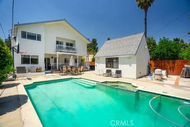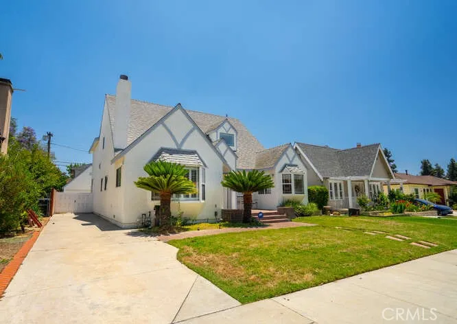 Step into timeless charm reimagined for modern living in this beautifully updated 4-bedroom plus office and 3-bathroom home, located in Glendales coveted Rossmoyne neighborhood. Originally built in 1924 and thoughtfully transformed in 2000, this 2,518 sq ft residence blends classic Tudor-inspired architecture with contemporary comforts. The south facing home has a manicured lawn with automatic sprinklers and a recently painted exterior. As you walk up the brick steps and enter the home the foyer opens up to the large living room with gas operated fireplace. There is a private office to the right of the entry perfect for the remote worker or could be used as a nannys quarters. Just beyond the staircase is the dining room, den and kitchen that opens out to the lovely backyard. Inside, rich wood floors flow throughout a spacious, light-filled layout. The main level features an inviting living area perfect for entertaining, a lower level bedroom and private office while the upper level includes three carpeted bedrooms including a serene primary suite with a private en suite bathroom and balcony looking out towards the skyline. The Laundry closet is located on the second floor for convenience. Each of the bedrooms offer generous space for family and friends. The home has central Air and Heating and dual paned windows. Outside, enjoy sunny Southern California days in your private backyard oasis, complete with a covered patio for outdoor lounging and BBQs, a sparkling pool, an inviting spa and a large detached garage that can be converted to an ADU or pool cabana. Located just min