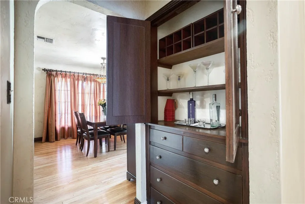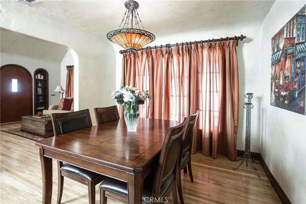 Wonderful opportunity to own a beautiful Tudor home in Rossmoyne area of Glendale. Loaded with curb appeal and originality. Step into the impressive living room through the original wooden arched door to its high ceiling, built-in bookcases, and gleaming hardwood floors throughout. Arch opening to formal dining room for wonderful dinners and entertainment. The cook's kitchen with its tiled countertops has new stainless steel appliances and large breakfast area. The primary bedroom suite has built-in illuminated fireplace, television, etc. The primary bath has double vanity sinks with tiled counters, tub with shower and large walk-in closet. Accessible from the primary suite is the lovely pavered patio and stone yard. Very delightful, peaceful and serene with its fountain and twinkling lites at night. You can entertain in this yard also with barbecue. Down the hall is another full bath, beautiful floor and tub with shower. The second bedroom has wood wainscoting and is currently used as office. The third bedroom is light and bright also with gleaming hardwood floors. The original wood of all of the doors make this home very impressive. From the front of the house you have a lovely mountain view. There is a wide driveway, 2 car garage with workshop bench. Also has a newer roof on this home. Beautifully landscaped. Conveniently located to Glendale schools, freeway, Nibley Park and shopping which includes Vons, Whole Foods, Trader Joe's and the new soon Erewhon Market. You wil be quite impressed with this home on lovely tree lined street.