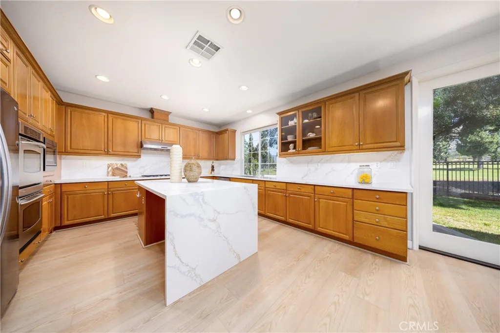 Premium Golf Course View Home in the prestigious gated community of Saratoga Estates. This luxury South facing estate comes with 5b/5b with one bedroom suite downstairs, an oversized two-car garage and a separate one-car garage. The family room with a fireplace opens to the gourmet kitchen which includes stainless steel appliances, newly upgraded quartz counter tops & backsplash. The living room, dining room, a large laundry room with soaking sink and a half bathroom are also on the first floor The master retreat, another 3 bedrooms and two bathrooms are on the second floor. The master retreat has a sitting area with another fireplace and a private balcony overlooking the golf course. Master bathroom is huge with soaking tub and double head shower. Separate Dual heating/AC systems on the first and second levels. Brand new floorings have just been installed throughout the house. The house is within walking distance to the Country Club and located in the top-rated Glendora School District.