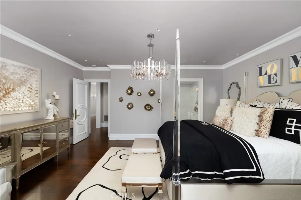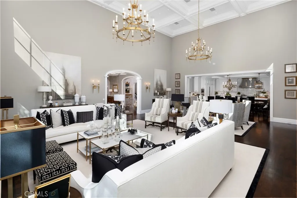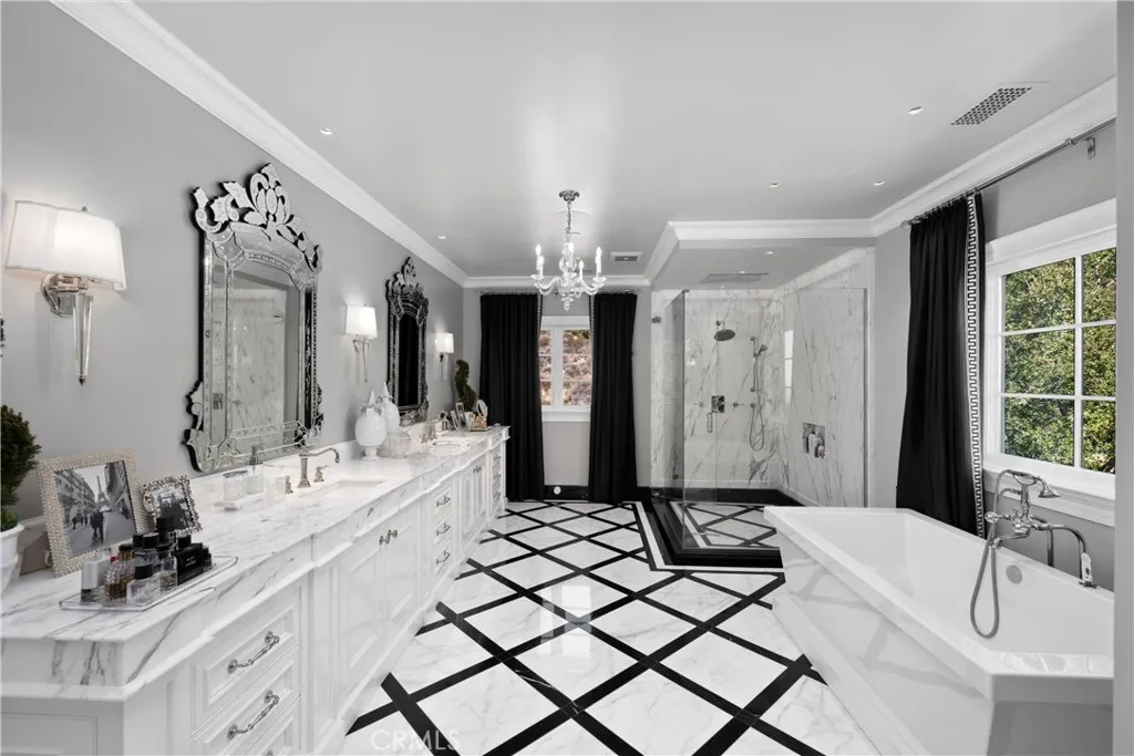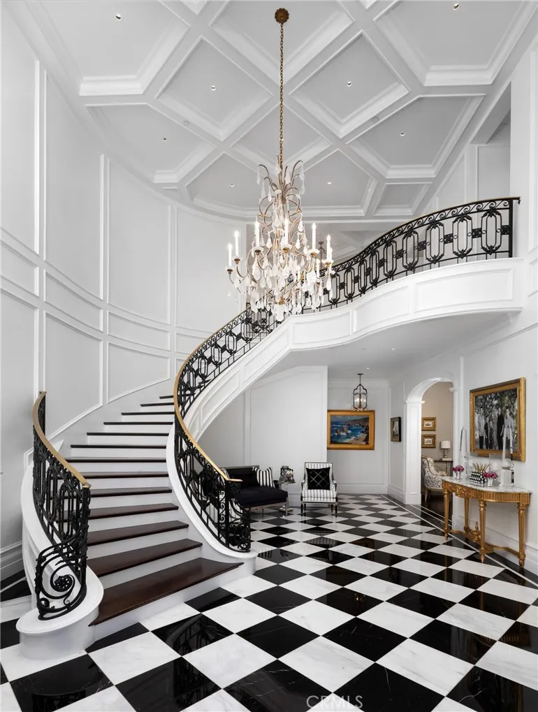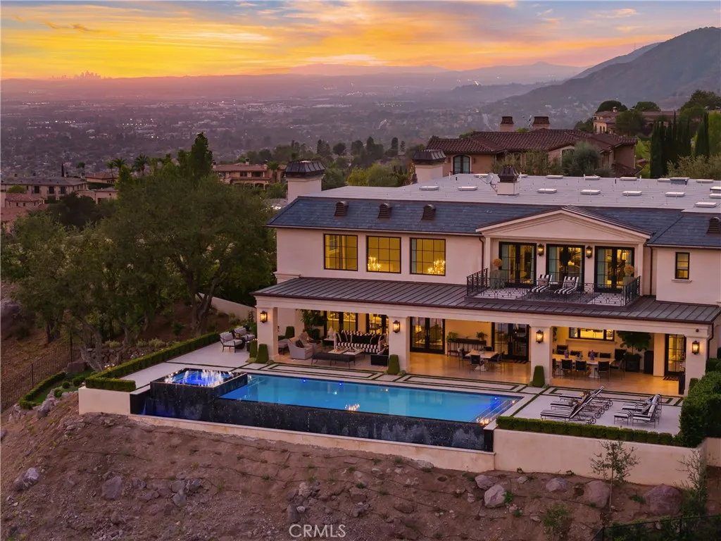 Set behind the gates of Glendoras only 24-hour guard-gated community, this extraordinary custom estate embodies architectural mastery, timeless elegance, and modern innovation. Poised on an elevated lot with panoramic city-light views, the residence has been meticulously crafted with the finest materials, advanced technologies, and impeccable attention to detail. A grand motor court framed by solid iron gates and in-ground motors welcomes you to the home, where gas lanterns, copper flashings, dormers, and chimney caps highlight its refined exterior. The beautifully landscaped grounds showcase the owners pride of care, thoughtfully curated with limestone walkways, lush greenery, and elegant lighting that enhances the estates natural beauty both day and night. Inside, a striking floating staircase, walnut flooring, and intricate wood paneling anchor interiors adorned with rock crystal chandeliers, Calcutta marble finishes, and custom brass-accented iron railings. State-of-the-art systems include Lutron lighting, Control4 automation, hidden motorized shades, custom AC vents, and full-home insulation for year-round comfort. The gourmet kitchen is a culinary showpiece with dual marble islands, Wolf and Sub-Zero appliances, a dedicated wok kitchen, and extensive custom cabinetry with pull drawers throughout. Additional features include a private theater with acoustic sound boards, a custom sauna, and two finished attics offering versatile functional space. The primary suite serves as a tranquil sanctuary, featuring a fireplace sitting area, spa-like en suite bath, and a large bal