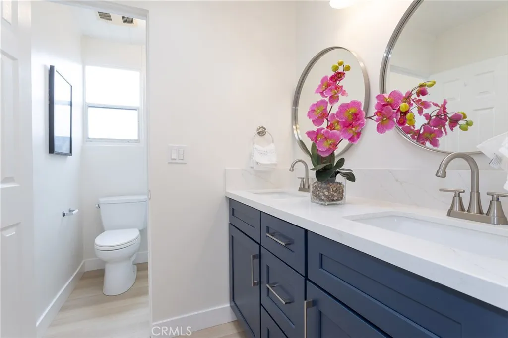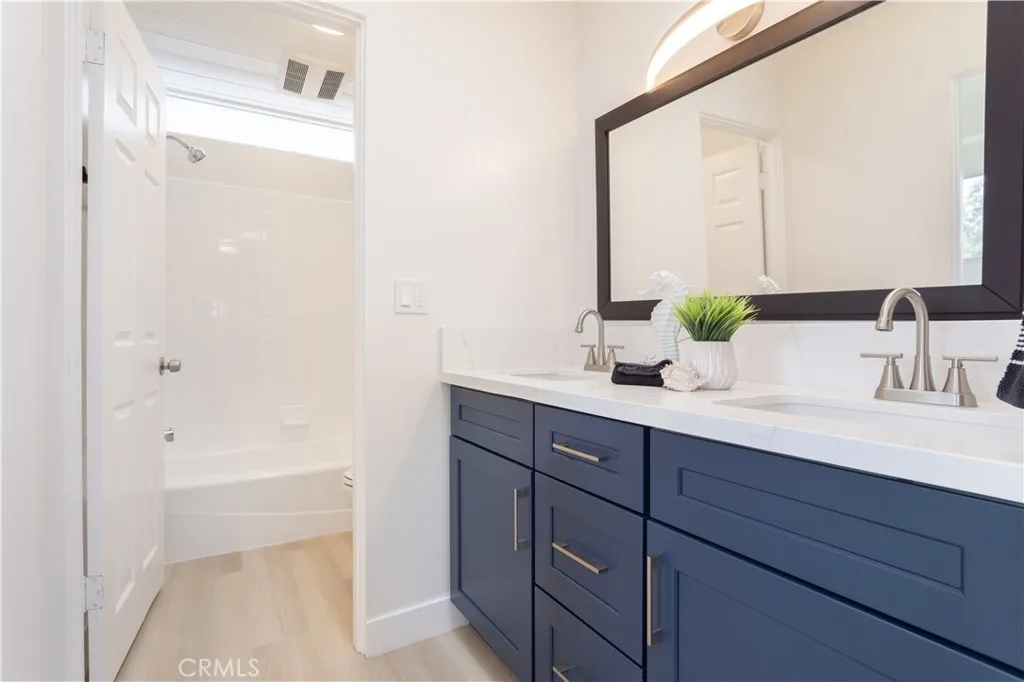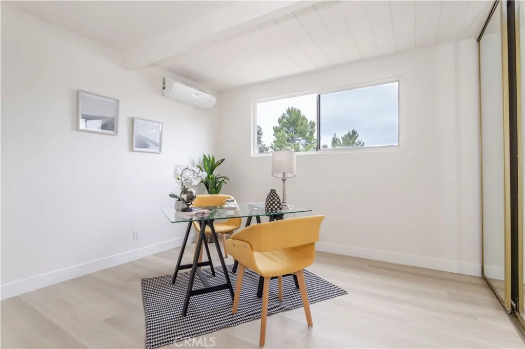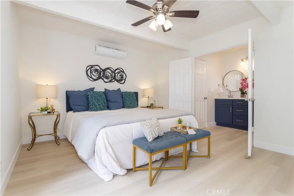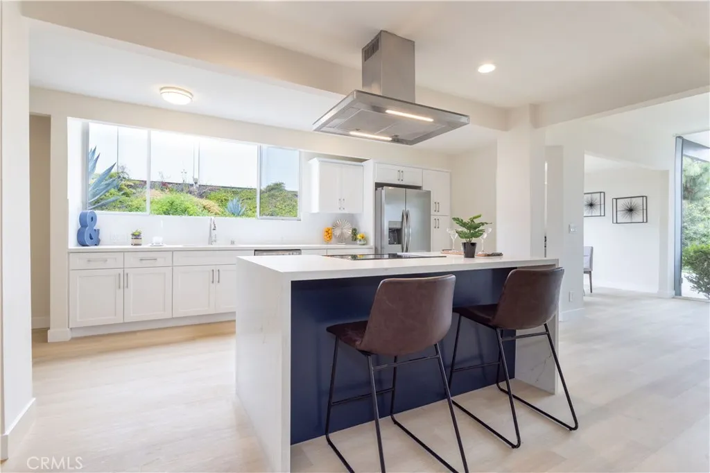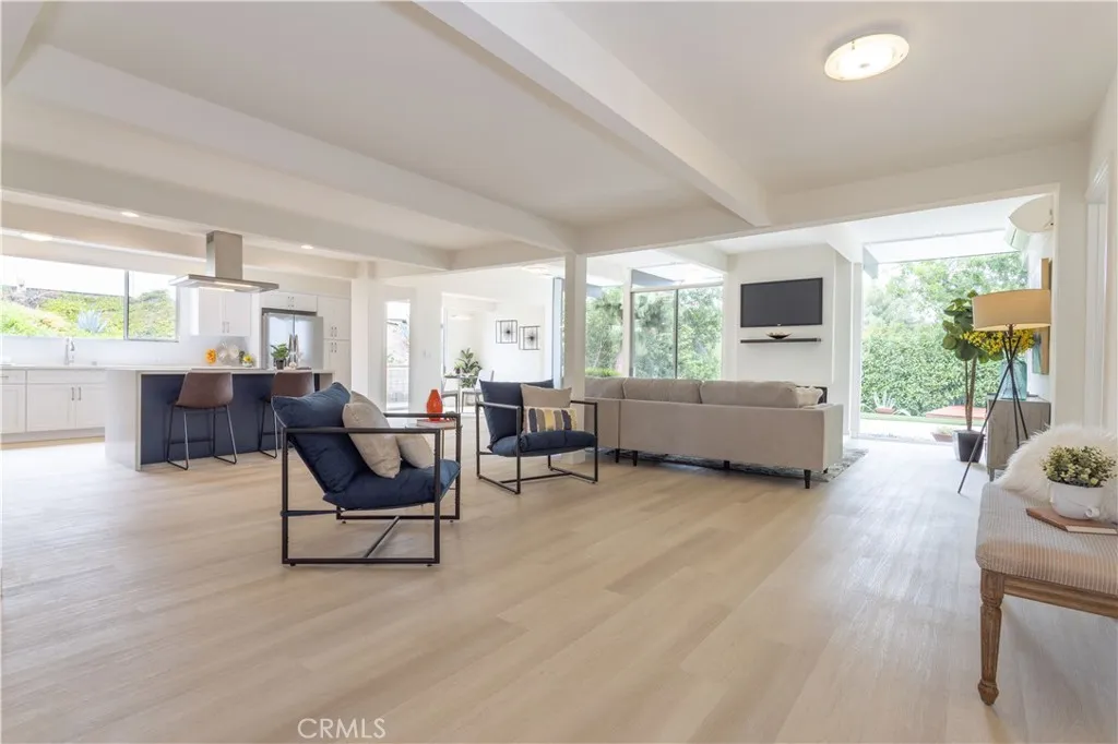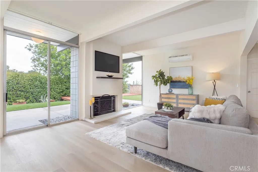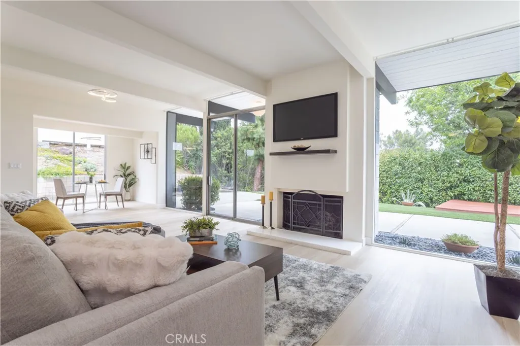 Dreaming of a totally updated mid-century modern home in Granada Hills with iconic architecture and open-concept living? This non-contributory Eichler home was originally designed by renowned architect A. Quincy Jones and has been completely remodeled with modern finishes while preserving its iconic charm. Featuring 4 bedrooms and 2 bathrooms, this light-filled home offers a massive great room with an ultra-open layout, brand-new kitchen with waterfall-edge quartz countertops, stainless steel appliances, subway tile backsplash, new cabinetry, an eat-in area, formal dining space, and a large island with room for stools. Enjoy multiple sitting areas, a cozy living room fireplace, new flooring throughout, and tons of recessed lighting. The primary suite includes a white wood ceiling, walk-in closet, and attached updated bathroom, while the three additional bedrooms share a beautifully remodeled hallway bath. Theres also an inside laundry area and an open, airy design with plenty of windows. Step outside to enjoy the low-maintenance backyard with artificial grass, a spacious deck, and multiple areas perfect for relaxing or entertaining outdoors. Located north of Rinaldi in Granada Hills, this mid-century modern home sits within the Balboa Highlands Historic Preservation Overlay Zone. Whether you're a fan of mid-century design, Eichler architecture, or simply moving to Granada Hills for its parks, hiking trails, top schools, or easy freeway access, this modernized Eichler-inspired home is not to be missed.