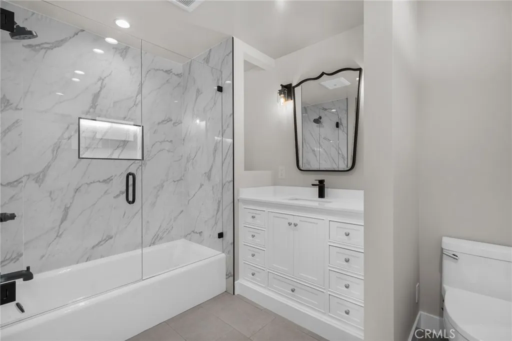 This property has been extensively renovated to offer modern luxury. The renovation included stripping the home down to the studs and rebuilding it with new copper water piping, drains, electrical wiring and panel, HVAC system, roof, and a tankless water heater. The footprint was expanded, adding a master bedroom in the loft and extending the living area. The home features high-end finishes like a solid iron front door, new windows, stucco exterior, new flooring, a brand new kitchen, and updated bathrooms. The exterior boasts new landscaping, a concrete patio, and an updated driveway. Ethernet cables have been installed in each bedroom for modern connectivity. Located in Hacienda Heights, known for its serene environment, San Gabriel Valley views, cultural community, and outdoor recreation, the property offers access to local amenities, the 60 freeway, and the Hacienda La Puente Unified School District, providing a peaceful suburban setting near Los Angeles County.
