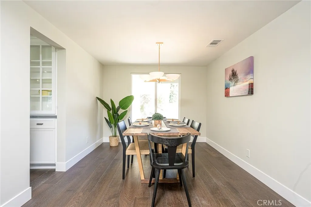 Beautifully UPDATED 5 bedroom, 3 bathroom home with stunning mountain and hill views in a desirable Hacienda Heights neighborhood. This home sits at the end of a cul-de-sac street with approximately 2441 sf of living space with an open concept living space. The kitchen has new custom two-tone cabinets, full tile backsplash, sleek new counter tops, new fixtures, stainless steel appliances, a large center island offering additional counter space and seating and a large walk-in pantry with an abundance of storage space. The bar space is great for hosting with a built-in wine fridge, wet bar area and built-in display cabinet. Downstairs you will find a living room with a decorative fireplace, dining room, kitchen, a den area that leads to one of the backyard patios, 3 bedrooms and 2 bathrooms. The primary bedroom is spacious with an ensuite bathroom, walk-in closet with custom built-ins, mountain views and sliding door that leads to another outdoor patio. Upstairs there are two additional bedrooms, both with mountain views and an additional bathroom. All the bathrooms have been upgraded with custom tile work, new fixtures and vanities. Other features include freshly painted interior and exterior, energy efficient windows and sliding doors, new interior doors, luxury flooring throughout the living areas and bedrooms, stylish plumbing and lighting fixtures, HVAC, and direct access to the two-car garage. The enclosed backyard is perfect for entertainment with stunning views, two patio areas and landscaped with new sod. This home is conveniently located and just a short distance to