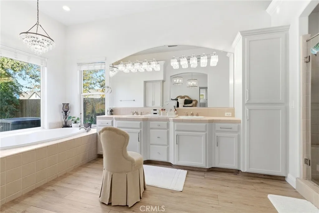 Discover an extraordinary residence at 170 W Pioneer Way--a stunning Pinnacle home situated in one of Northwest Hanford's most prestigious neighborhoods. Offering 4 bedrooms, 3 full baths, an office, and 3305 sq ft of refined living, this property blends timeless craftsmanship with elevated modern luxury. A grand double-door entry welcomes you into an impressive main living space where soaring ceilings, a dramatic wall of windows, and a beautifully framed fireplace create a breathtaking first impression. The scale and openness of this room set the tone for the rest of the home--grand, inviting, and designed for effortless entertaining. The adjacent formal dining room exudes sophistication, easily accommodating a banquet-sized table, making it ideal for gatherings, holidays, and elegant dinner parties. The remodeled kitchen offers a flawless layout with a generous center island, abundant prep surfaces, stainless steel appliances, gas cooking, and a custom built-in wine refrigerator. Designer paint, custom built-ins, crown molding, surround sound, and statement lighting bring a polished, curated vibrance to the space. A dedicated office with French doors and an oversized laundry room with a utility sink and extensive cabinetry add everyday convenience. The owner's suite is a sanctuary--grand in size and beautifully designed with custom closet shelving, an oval soaking tub, walk-in shower, dual vanities, and a dedicated makeup area. All secondary bedrooms are spacious, well-proportioned, and filled with natural light. The backyard transforms the property into a private resort.