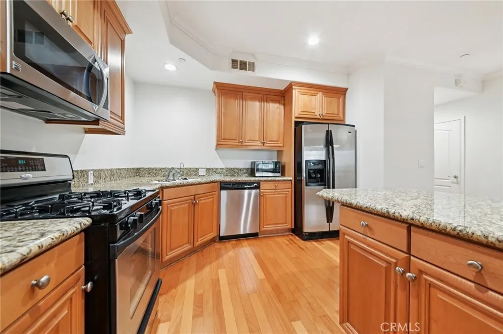 Experience comfort, style, and convenience in this beautifully maintained 3-bedroom, 2-bath condo located in the sought-after Bay Harbor gated community of Harbor City. Perched on the 3rd floor, this bright and inviting home showcases stunning neighborhood and city views, filling the space with abundant natural light. Boasting 1,260 sq. ft. of living space, the thoughtfully designed layout features a welcoming living area enhanced by recessed lighting, flowing seamlessly into a light-filled kitchen ideal for both everyday living and entertaining. The kitchen includes granite countertops, a large island, built-in stainless steel appliances, and stylish laminate wood flooring throughout the main living areas. Central air and heat provide year-round comfort. Step out onto your private balcony to enjoy morning coffee or unwind in the evening, while extra storage adds practicality and convenience. The home offers three spacious bedrooms, including a serene primary suite with a walk-in closet and private ensuite bathroom. A second full hallway bathroom serves guests and family alike. Additional features include an in-unit washer and dryer and two side-by-side parking spaces for easy access. The Bay Harbor community enhances your lifestyle with a beautifully maintained central courtyard and barbecue area, perfect for relaxing or entertaining friends and neighbors. Dont miss the chance to make this bright, airy, and stylish Harbor City condo your new home!
