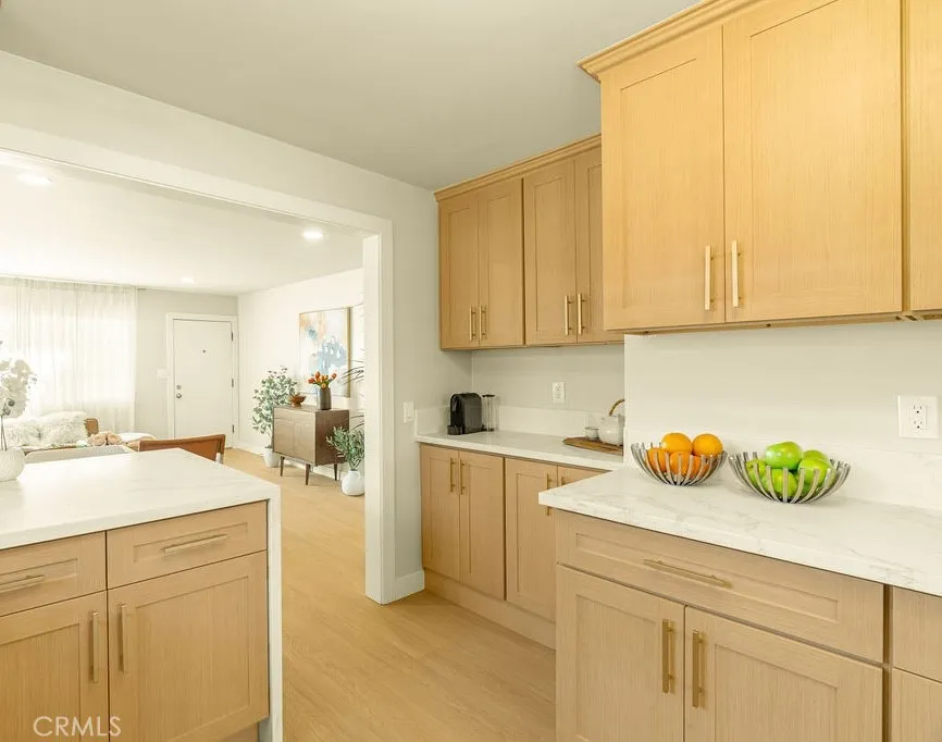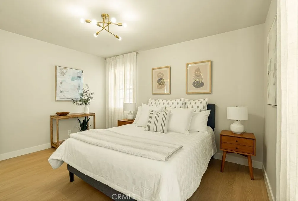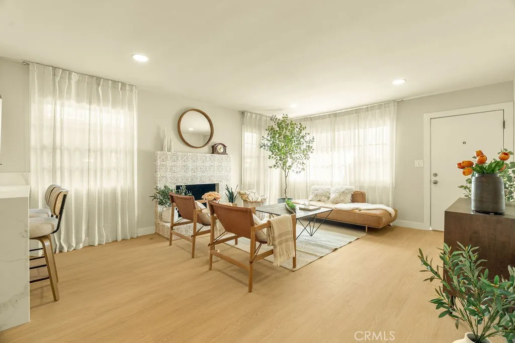 As you enter this beautifully remodeled three bedroom two bath single family home, youre greeted with warm inviting colors of the freshly painted walls, luxury vinyl flooring and a newly tiled fireplace. The remodeled kitchen showcases contemporary finishes and chic design with beautiful cabinetry, brand new stainless steel appliances and quartz countertops. All three bedrooms are generously sized, with the primary bedroom being extra spacious that can accommodate a king size bed plus other furnishings, featuring a walk-in closet and an en-suite bathroom. Both remodeled bathrooms reflect modern design featuring elegant tiles on the shower walls & floor and shower glass doors for a more finished high-end look. Step outside to a huge backyard with ample space for outdoor entertaining family & friends, gardening and future expansion. This property offers an opportunity to be close proximity to many world-class entertainment of So-Fi Stadium, The Kia Forum, Intuit Dome, YouTube Theater and countless great dining and shopping options.