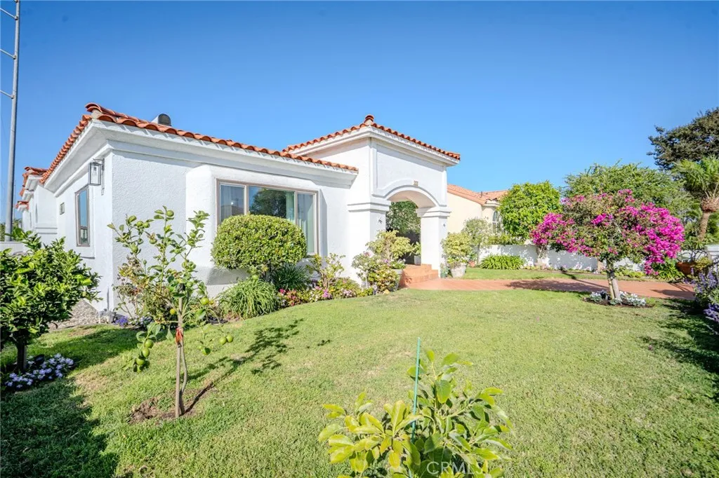 Charming Spanish-style home in the heart of Hawthorne. This beautiful property features a gated front courtyard, arched entryways, and vaulted wood-beam ceilings that fill the home with warmth and character. The spacious living room flows into a formal dining area, perfect for entertaining. The kitchen retains its original charm with classic tile countertops, ample cabinetry, and room to create your dream space. The primary suite includes mirrored closets and a private bath with dual vanities, soaking tub, and separate shower. Enjoy outdoor living in the private courtyard or side patio. Additional highlights include central A/C, an attached two-car garage, and timeless Spanish-style detailing throughout. Conveniently located near beaches, shopping, dining, and major freeways and schools.