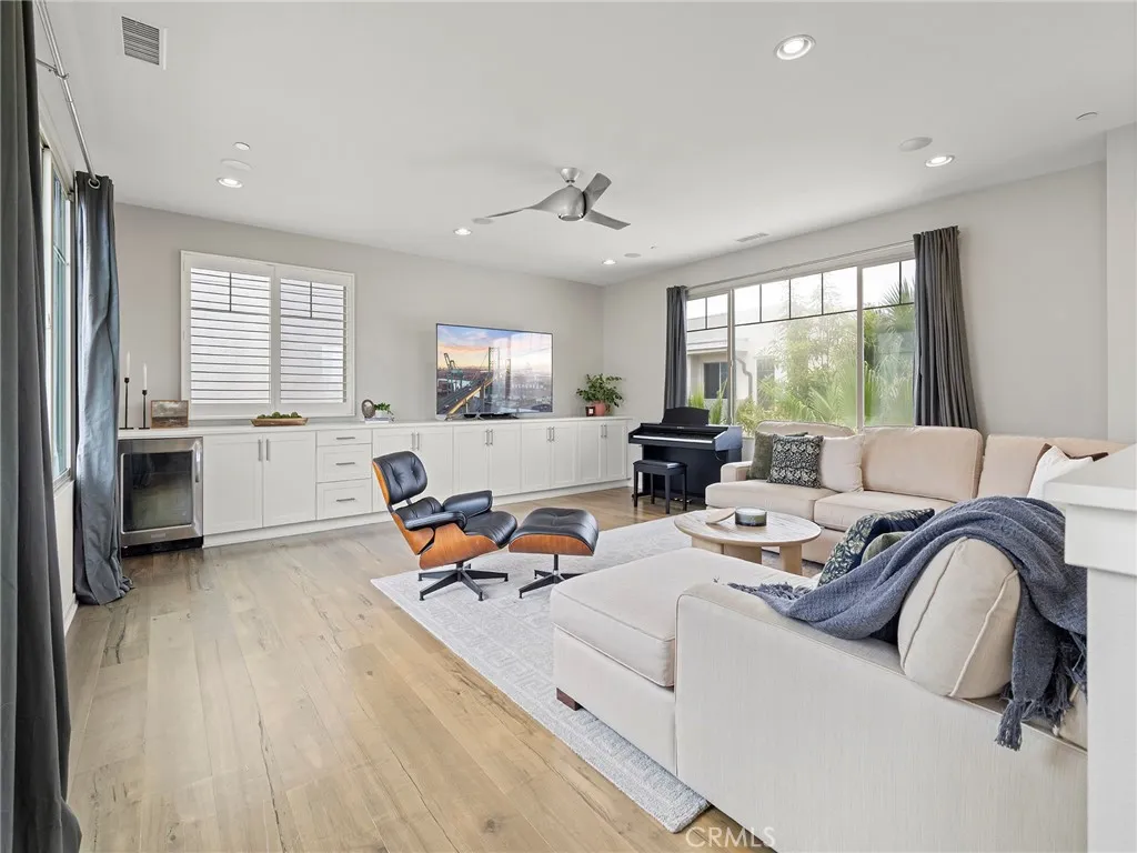 This is the home you have been waiting for! Situated in the coveted, resort-style ThreeSixty at South Bay gated community, this rare front-facing residence enjoys a prime location directly across from the parkone of the most desirable lots in the neighborhood. Step inside and be welcomed by high ceilings and an open-concept layout that seamlessly connects the kitchen, dining, and living areas. Rich hardwood floors and a convenient half bath enhance the main level, while direct access to the epoxied-floor 2-car garage adds ease to daily living. Outside, an inviting turf-lined patio provides the ideal spot to relax or BBQ. The homes large, bright kitchen is thoughtfully designed with quartz countertops, a generous dining island, and abundant storageperfect for both everyday meals and sophisticated entertaining. Throughout the home, enjoy upgraded features including a whole-home speaker system, plantation shutters, and a suite of smart home enhancements. The current owners have elevated energy efficiency and convenience with owned solar, a Tesla Powerwall, and a NEMA EV charger. All four spacious bedrooms are located on the second level, each outfitted with custom closet systems. The primary suite offers a private en-suite bath, and the upper hallway hosts a full bath and a dedicated laundry room. The top floor is a true standout: an expansive family room opens to a partially covered rooftop deck with turf, creating the perfect retreat for relaxation or hosting guests. A bonus flex space, currently used as a home office, adds versatility for evolving needs. Residents of ThreeS