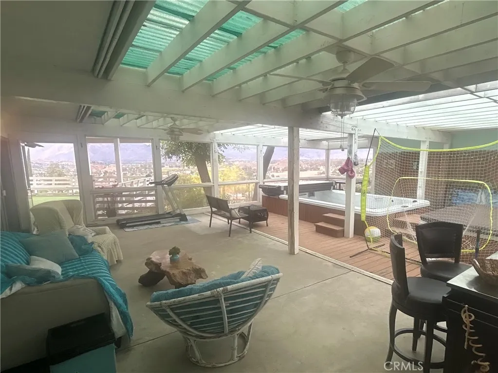 Mid-Century Home with a Retro Vibe!! View Property on ~1 Acre Privacy & Potential Enjoy panoramic views and peaceful seclusion in this ~1,750 sq ft home on ~1 acre with no rear neighbors and no future development behind. Natural setting includes a seasonal stream and waterfall. Interior features a retro aesthetic with a round stone fireplace, metal flue, and white stone bench surrounded by black flagstone flooring, designed to heat the front living area. Built-in mid-century bar with original glass sliders adds charm. Private front patio retreat includes screened enclosure, partially in-ground therapy swim spa + hot tub, decking, 2 patios with roof shade, and ceiling fans. Approx. 900 sq ft bonus room offers flexible use. Front covered patio could be enclosed for added living space and views. Expansion potential with pre-framed area, rebar, and plumbing for future bath. Kitchen can be opened to bonus room. Upgrades include newer septic & leach lines, solar (transferable), newer A/C & furnace. Property also features 2 covered carports (one convertible), ~10 parking spaces, fenced dog run, and large laundry/pantry. Investment Buyers great tenants in place! Cash Buyers as-is sale, price negotiable.
