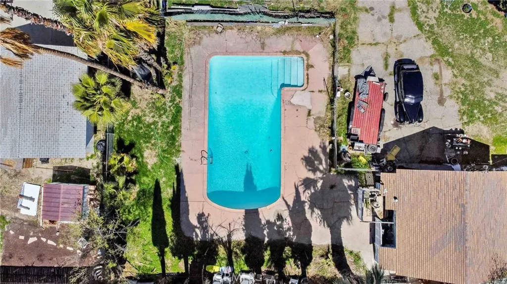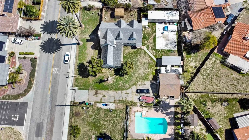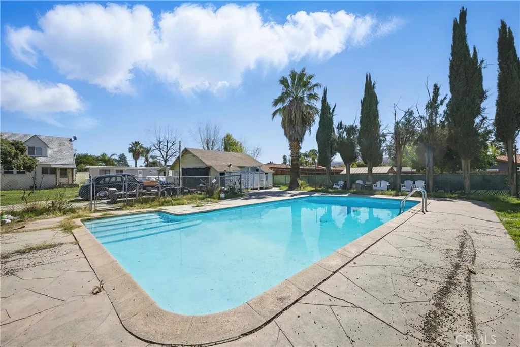 Discover the enchanting charm of this vintage 2-story home, perfectly situated on a sprawling 0.60-acre lot in East Hemet neighborhood. This captivating residence harmonizes classic elegance with contemporary comforts, making it a perfect retreat for families and entertainers alike. This property is a perfect fixer upper to upgrade to your likings with endless opportunities. Don't let this spacious property get away! Boasting 6 spacious bedrooms and 2 full bathrooms, plus a convenient partial bath off the detached garage, this generous 3211 square foot home is designed for both relaxation and celebration. The inviting floor plan features a formal living room and a separate dining area, creating the perfect setting for hosting gatherings or enjoying cozy family meals. Also a bonus room attached the living room leading to the backyard. 3 Bedrooms downstairs and 3 bedroom upstairs. Step outside to your own private oasis, where a pool awaitsideal for cooling off during warm summer days or simply soaking up the sun poolside. The expansive yard provides endless possibilities for outdoor activities, gardening, or creating your dream landscape. With a detached garage that offers ample storage space and RV parking, youll have the flexibility to accommodate all your vehicles and recreational toys. Experience the perfect blend of vintage charm and modern living in this delightful Hemet homeyour new sanctuary awaits!