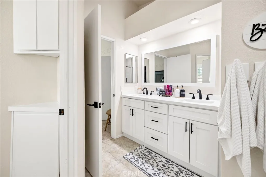 Back on market! Beautifully upgraded two-story pool home located in a highly desirable Southeast Hemet neighborhood. This spacious residence offers a separate formal living room and a cozy family room with a fireplace, perfect for entertaining or relaxing. The remodeled kitchen features elegant stone countertops, stainless steel appliances, custom cabinetry, a coffered ceiling, decorator porcelain sink, and plantation shutters that frame a serene view of the backyard pool and spa. A breakfast counter and formal dining room provide ample space for gatherings, with the dining room flowing seamlessly into the formal living area. Downstairs includes a fully remodeled bathroom with a large walk-in shower. All bedrooms are located upstairs, including a luxurious master suite with a recently renovated en-suite bathroom featuring dual sinks, new cabinetry, and an oversized walk-in shower. The second upstairs bathroom offers dual vanity sinks, upgraded counters, and a large soaking tub with a shower combo. The backyard is an entertainers dream, complete with a covered patio, sparkling pool, and raised spa. The home also includes a three-car attached garage with a 220-amp electrical connection. Enjoy the peaceful, country-like setting while remaining close to schools, shopping, and other amenities. This is truly a must-see property.