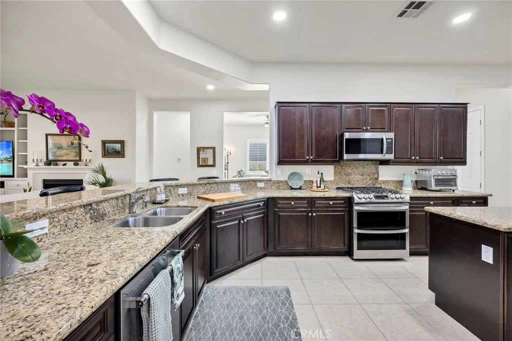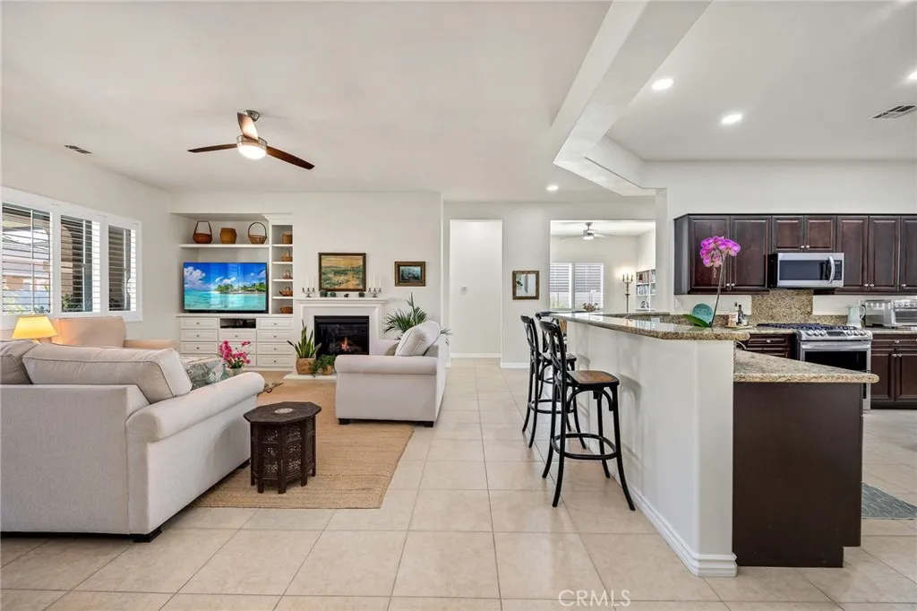Welcome Home!!! Wonderful flexible floor plan, eating areas in the kitchen and Dining room, cozy fireplace. This home is ready for you! Big Kitchen and open to the living room. Great for entertaining and hosting guests. Dial in your comfort with whole house fans throughout. Spotless home on very quiet senior cul-de-sac. Plantings are easy care and healthy with full irrigation . Move in and live best retirement life! Terrific amenities at your Spacious state of the art clubhouse. Conveniently located for shopping. 55 plus please