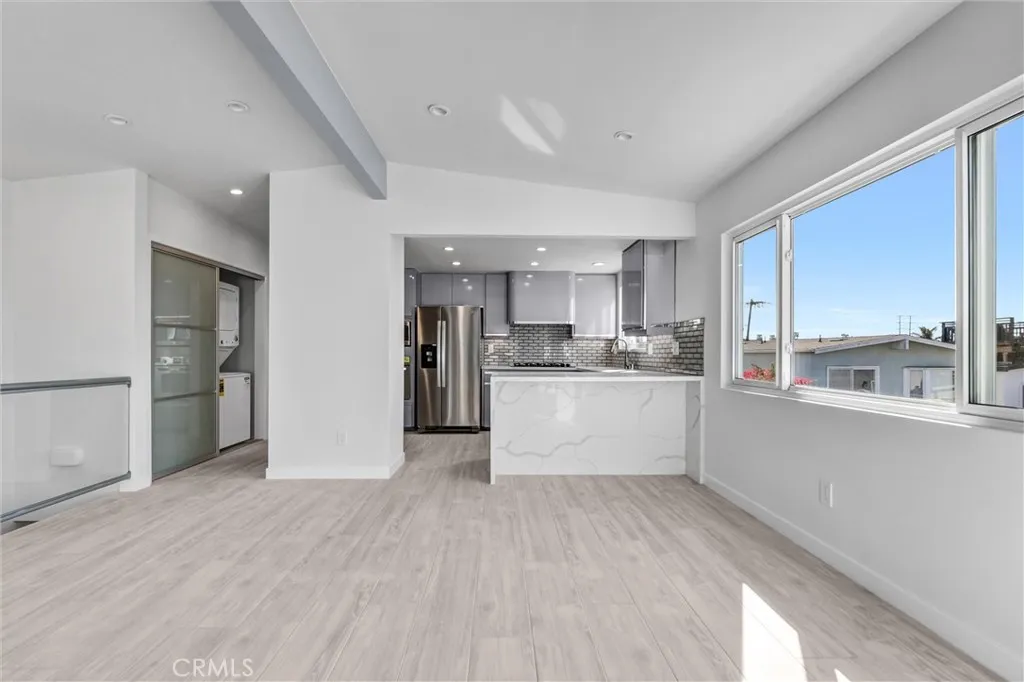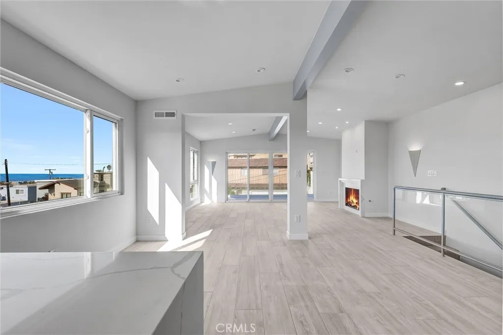 Re-imagined, re-designed, rebuilt, and replaced home!! Custom creation. Sparkling, stunning, unique 2-story, 3 bedroom, 2-bath, a contemporary gem of unparalleled quality. Impeccable, meticulously upgraded with top quality materials, sophisticated and stylish, with a surprise or two! This Show Stopper Home is in a prime location and seamlessly blends luxurious living in a modern environment with the relaxed coastal lifestyle you wish for! This light-filled residence is a perfect blend of contemporary style and comfort. Quality attention to detail, superb craftsmanship and outstanding finishes are emphasized throughout. The modern design elements bring harmony and cohesion to the interior. Master and secondary bedroom on first level, third bedroom on second level. Turn-key, move-in ready, with new, top-of-the line upgrades and high-end, modern appliances, include an exclusive, Italian Creda, glass-top stove. Dramatic, architectural enhancements of high, beamed, and vaulted ceilings, with recessed lighting, complement the exceptional open-concept floor plan, highlighted by luxury Spanish flooring throughout, teamed with rare Italian tile in both bathrooms. The absolute state-of-the art kitchen features counters and a bar of sleek, amazing, Calacata quartzite, also used for the stunning, one-of-a-kind, surprise fireplace. With all-new windows, the bright, airy interior is flooded with light and reflects the open-plan design philosophy. A wall of sliding glass doors provides balcony access. Second-floor windows deliver panoramic ocean views and the balconys magnificent coastlin