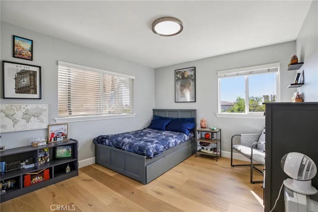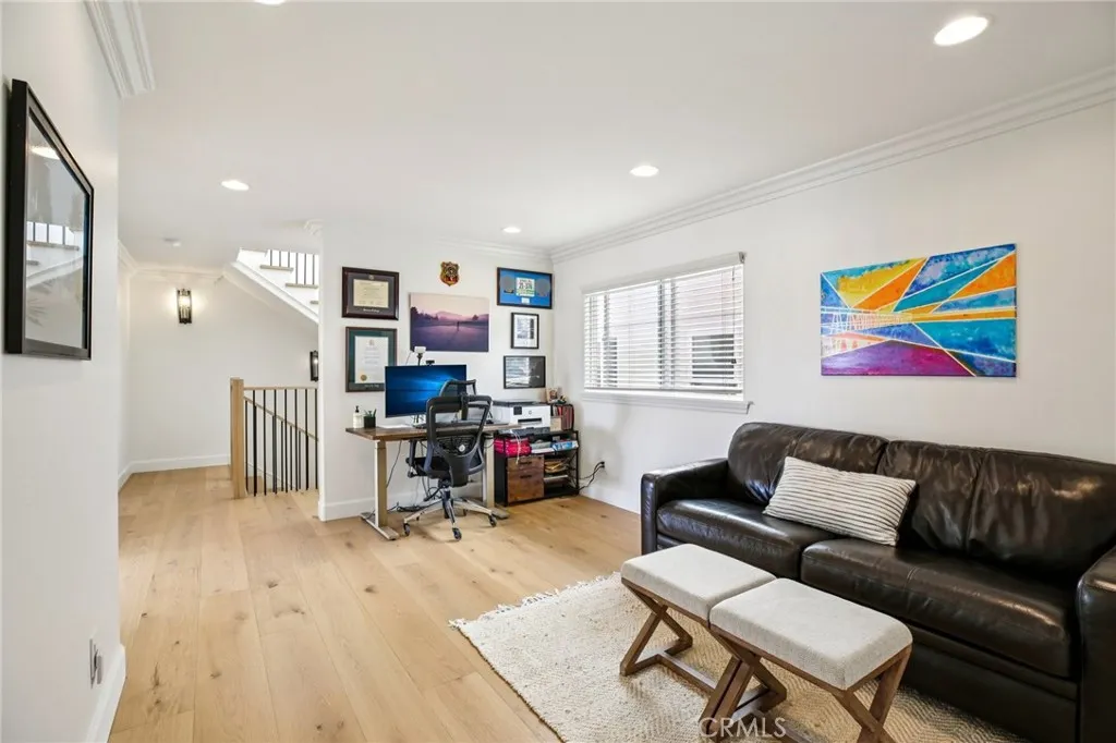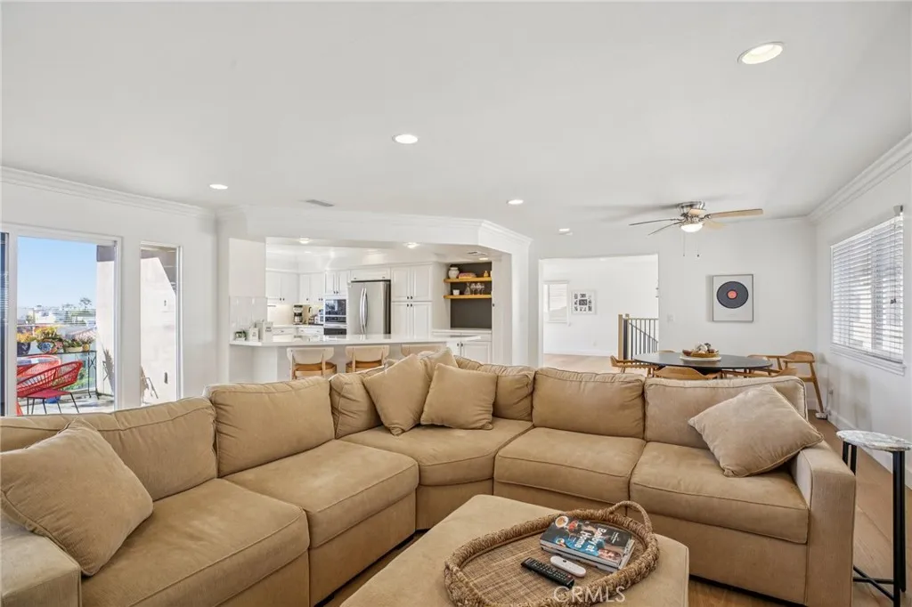 This beach residence on one of Hermosa Beachs most desirable cul-de-sac streets offers a refined blend of luxury, comfort, and functionality. If your search is for a single family home, make an exception to live on 7th Street in a townhome that lives like a single family. With four bedrooms, three-and-a-half bathrooms, new hardwood floors, and nearly 2,700 square feet of thoughtfully designed living space, the home captures the essence of relaxed ocean view coastal sophistication. The top floor serves as the heart of the home, where an open-concept layout connects the living room, a dining area, and recently remodeled kitchen. Stainless steel appliances, an oversized island with bar seating, and generous cabinetry create a space thats as functional as it is inviting. Sliding glass doors open to an ocean view patio ideal for dining and entertaining against the backdrop of Hermosas golden sunsets. A second dining area, framed by windows and another set of patio doors, provides flexibility for both casual and formal gatherings. The middle level features three bedrooms, including a serene primary suite with a walk-in closet and a large bathroom offering dual sinks, a soaking tub, and a separate shower. A flex space is included for extended family space or a home office. New hardwood flooring extends throughout the home for a sense of warmth and continuity. On the entry level, a guest bedroom and full bath provide privacy for visitors, a home office, or multi-generational living, alongside a dedicated laundry room and direct access to the two-car garage with additional driveway