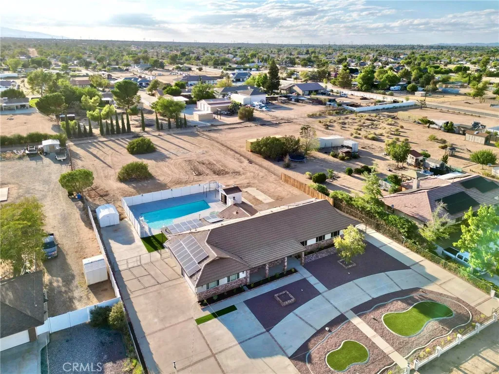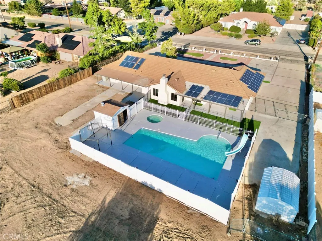 Completely Remodeled Custom Home on Over an Acre with Pool & Owned Solar Fall in love with this stunning single-story 4 bedroom, 3 bathroom custom home that has been fully remodeled from top to bottom and offers the perfect blend of luxury, comfort, and functionality. Set on over an acre in Hesperia, this property is move-in ready and designed to impress all with NO HOA and ultra-low energy bills thanks to owned solar. From the moment you step inside, youll notice the warmth of the open floor plan, the fresh designer paint, and the glow of recessed LED lighting paired with upscale fixtures that add a touch of elegance throughout. Brand-new luxury vinyl plank floors lead you through formal living and dining rooms and into the all-new chefs kitchen, complete with quartz countertops, stainless steel appliances, a large walk-in pantry, and a sunny breakfast nook perfect for morning coffee or late-night gatherings. Large family room with vaulted ceilings, brick fireplace and build in shelving, enough space for you and your 20 closest friends! The spacious bedrooms and completely remodeled bathrooms provide comfort for everyone, while the private primary suite feels like a retreat with its spa-like bath featuring marble-look tile floors, dual vanities, and a frameless glass shower enclosure. Every detail has been carefully upgraded, including modern interior doors and trim, new dual-pane windows, energy-efficient sliding doors, upgraded electrical panel, and even an epoxy-coated garage floor for car enthusiasts or hobbyists. Step outside and enjoy true California living. A circu