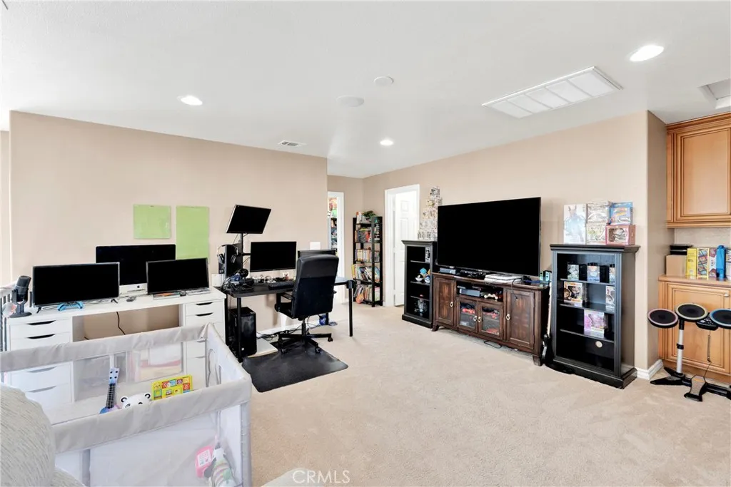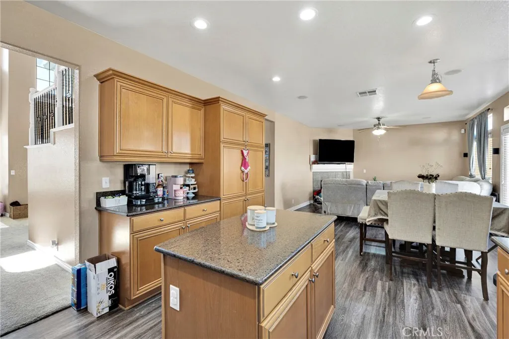 This Beautiful Home offers a modern, experience Beautifully renovated in 2021 with cathedral ceilings and an elegant wrought-iron staircase open concept layout featuring a center island flowing into a family room . There is a bedroom (without a closet) downstairs and a full bathroom downstairs. Upstairs is a loft with built in cabinets. The master suite has double door entrance, a fireplace and a large walk in closet with mirrored doors and the large master bathroom has a vanity. Fully fenced backyard and the front and backyards are landscaped. The oversized 3-car garage give you plenty of space for multiple cars or toys! heating and washer/dryer hook-ups inside downstairs schools near Cottonwood Elementary,Cedar Middle and Oak Hills High School near 15 Fwy and shopping centers.NO SOLAR PANELS