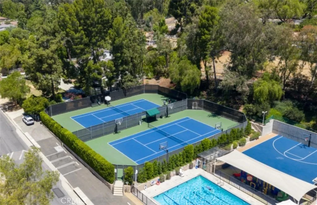 Single story gem is located behind the gates of the highly desirable exclusive & private guard gated community of Hidden Hills. This elegant Farm Home is perfect for entertaining. Fall in love the moment you step inside. The home is gorgeous & recently updated with luxury touches throughout. Modern & hip. Backyard oasis with a sparkling pool, outdoor Bbq, sports court & more. Recessed lighting, wood floors, Chefs gourmet kitchen with granite counters, top of the line appliances including a Thermador Refrigerator and glass wine panty. Large open floor plan offering 3726 sq ft with 6 bedrooms & 4 baths. Light & bright with windows galore. Home comes equipped with SONOS Smart Home Technology & RING Home Security System. Save money with fully paid off Solar Panels. Huge lot on 1.31 Acres with plenty of room to add on or to add an ADU/Guest House. Large private driveway and additional lot next door. Hidden Hills amenities include an Equestrian Center with a riding arena, community center, tennis court, pool, movie theater & more.